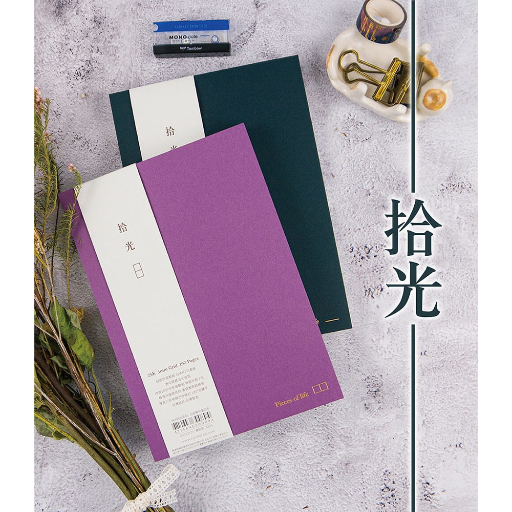 臺灣- conifer 綠的-紙品 拾光系列 Ⅳ 橫線/方格內頁 25K裸背精裝筆記本