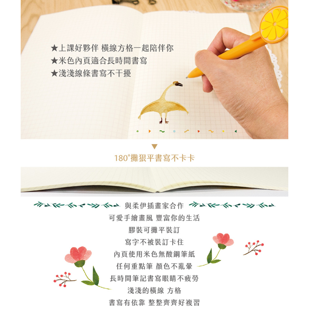 臺灣-綠的-紙品 柔伊插畫家合作 Ⅳ 筆記本(A5 14.5x21cm)