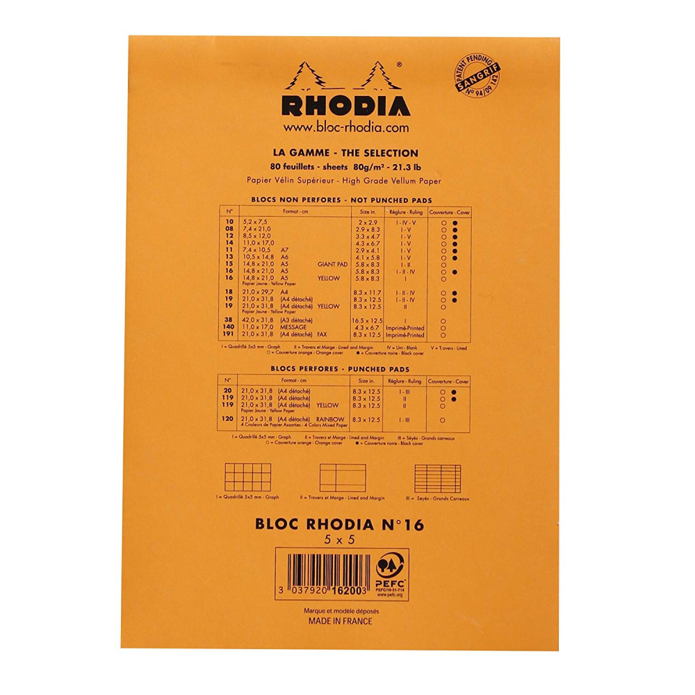法國 RHODIA N°16 橘色上翻筆記本 148mmx210mm A5 方格內頁(16200C)