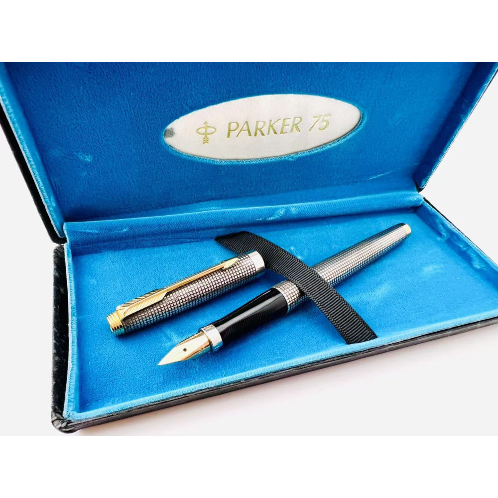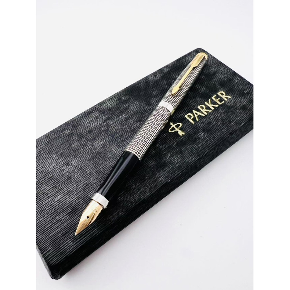 ☆典藏老筆☆ 派克 Parker 75 純銀格 鋼筆 14K XF尖 ( #GH-1700K 近新品)