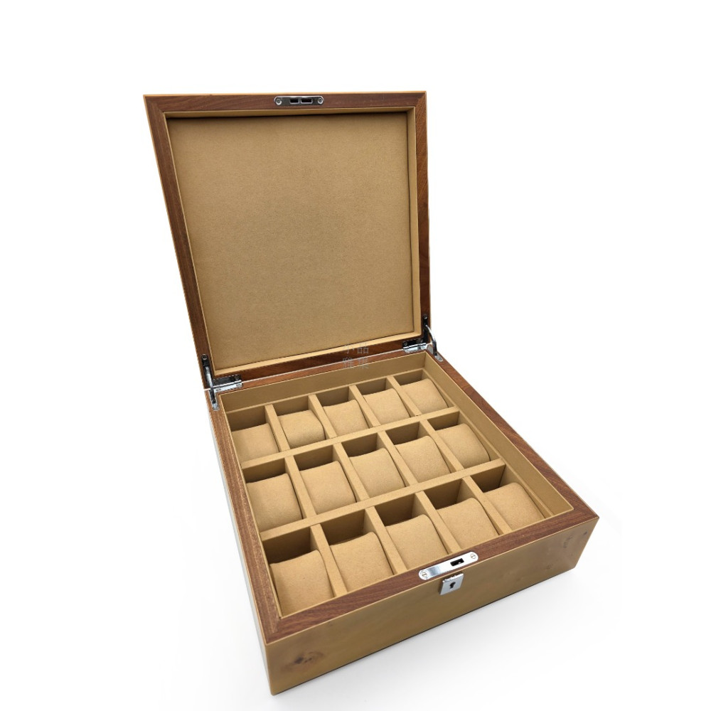 唐邦木業 古典木製手錶收藏盒 樹瘤木 鋼琴烤漆 15支裝(可上鎖)