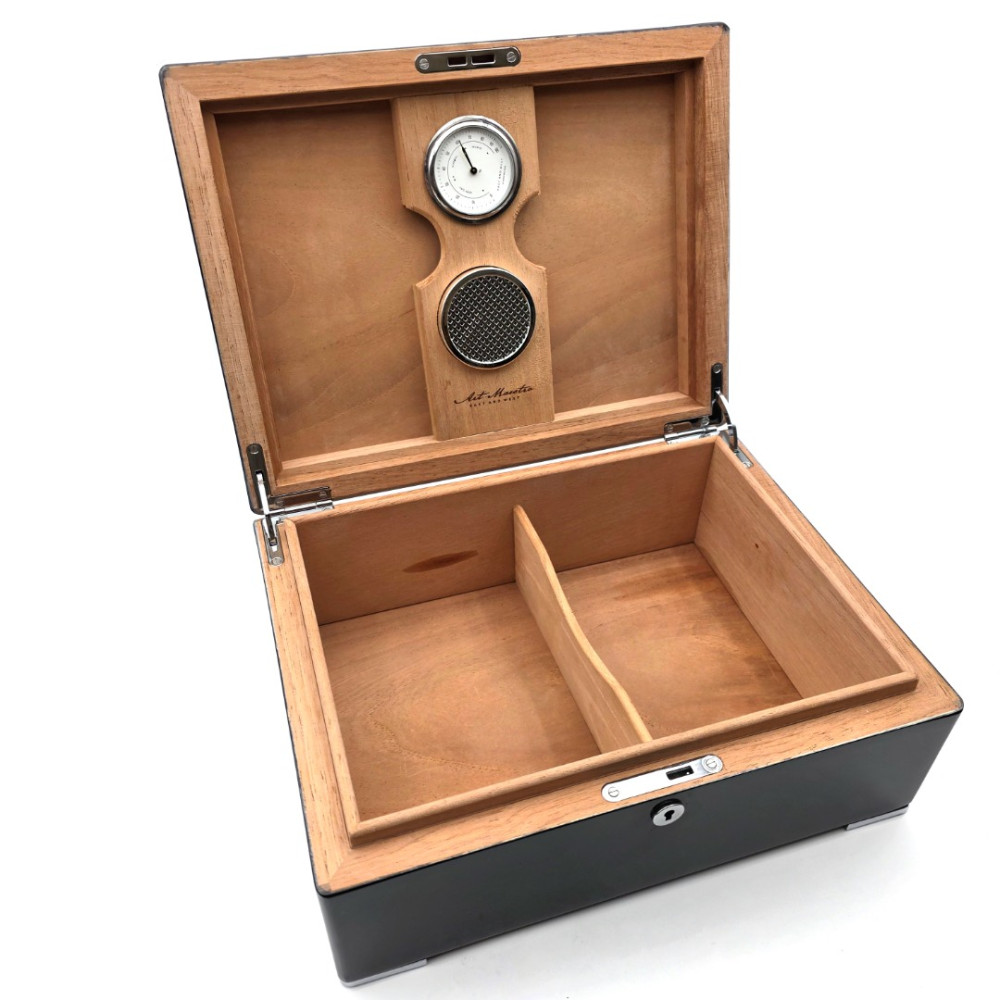 利用其天然吸濕特性與獨特香氣,有效穩定濕度並促進雪茄醇化;搭配原廠高精度指針式濕度計與金屬加濕器,
