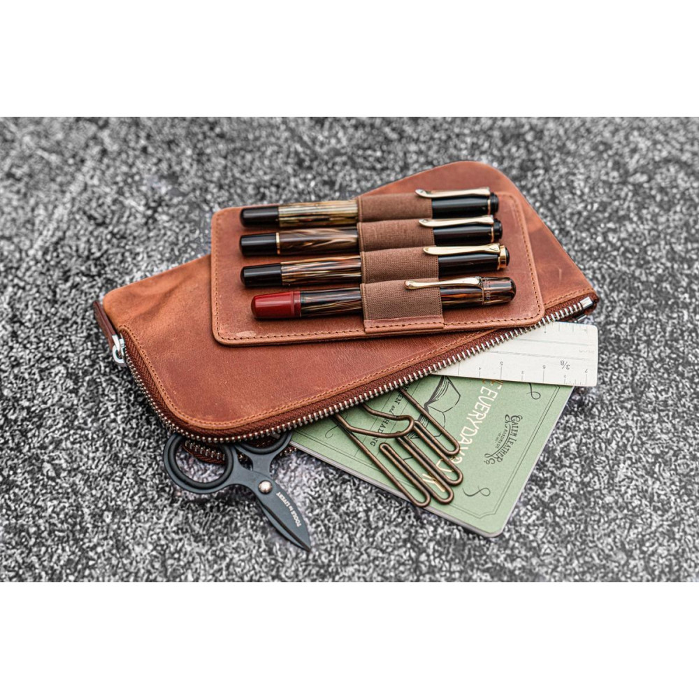 土耳其 Galen Leather 蓋倫皮革 4支入 分離式 拉鍊筆袋 (瘋馬皮棕色)