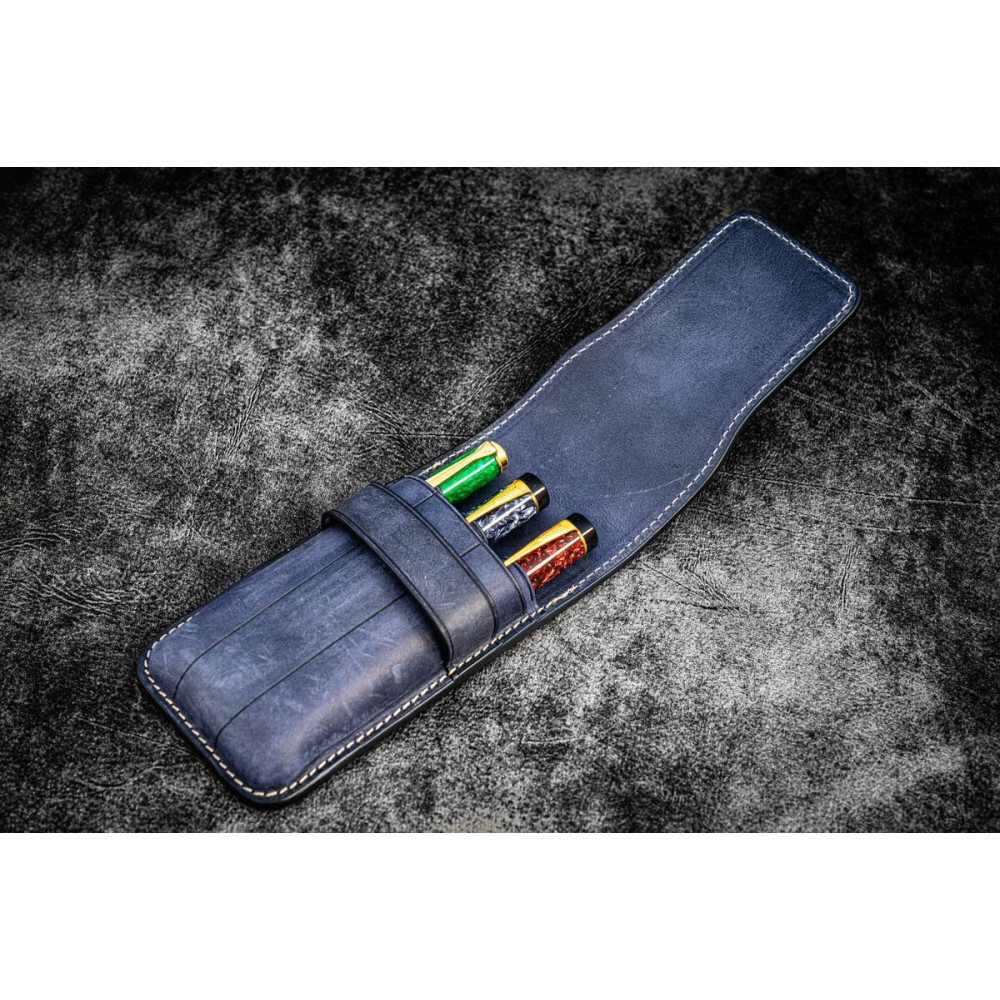 土耳其 Galen Leather 蓋倫皮革 3支入 上掀式 筆套(瘋馬皮海軍藍)