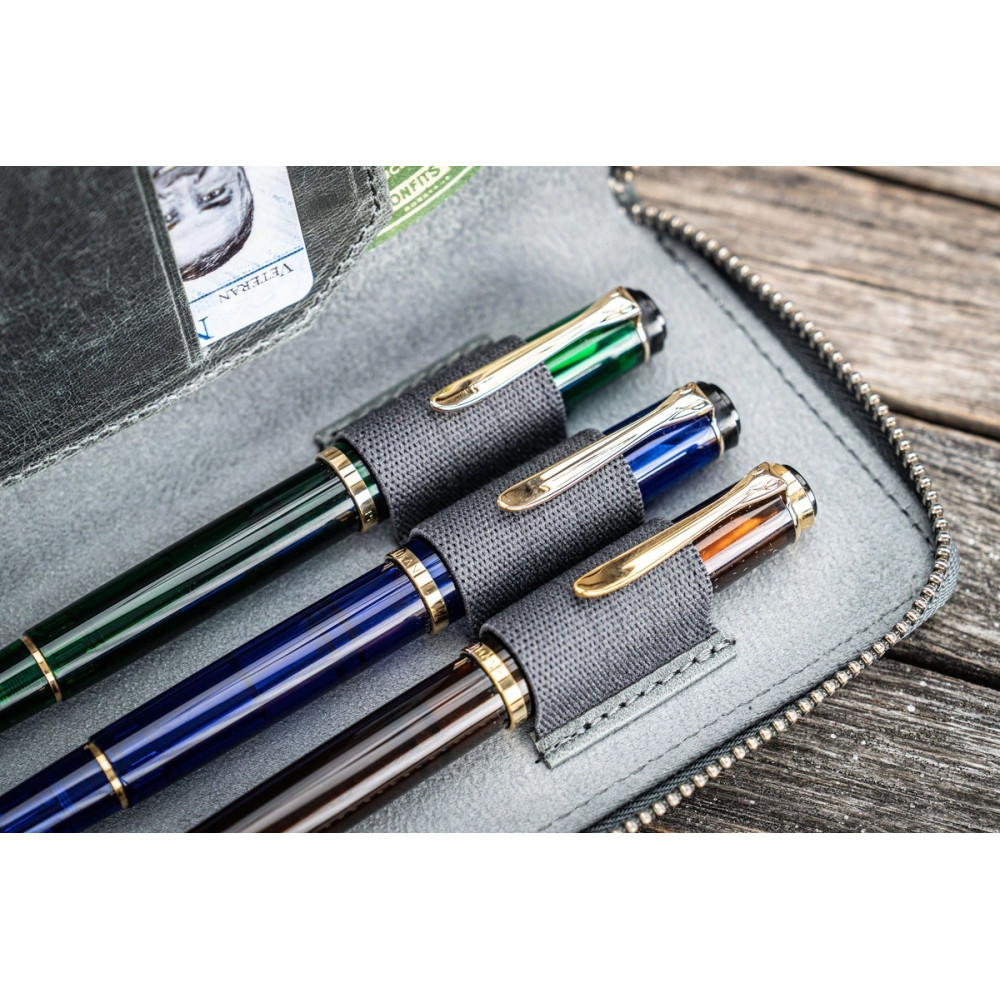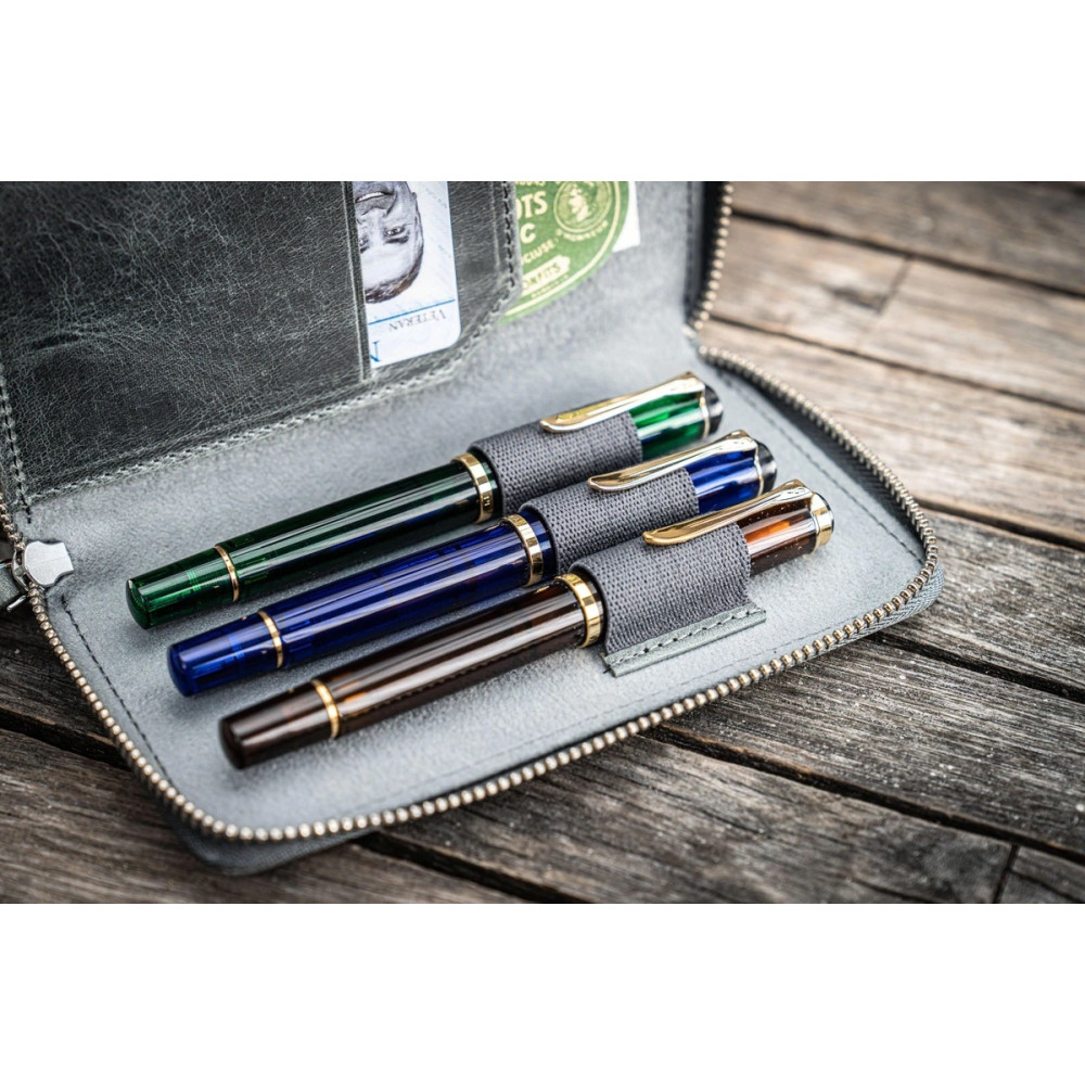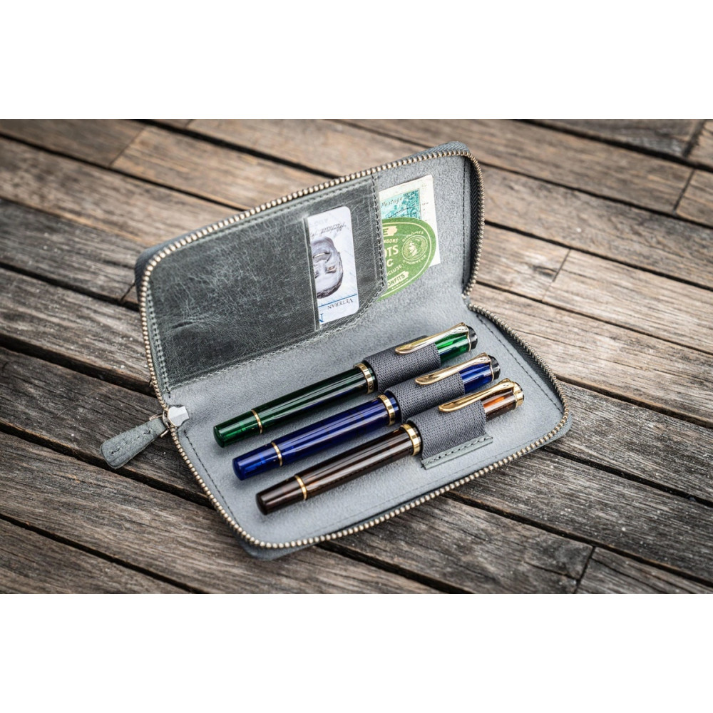 土耳其 Galen Leather 蓋倫皮革 3支入 卡夾 拉鍊式 兩用筆套 (灰色)