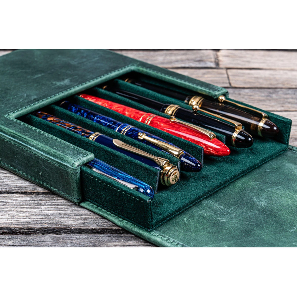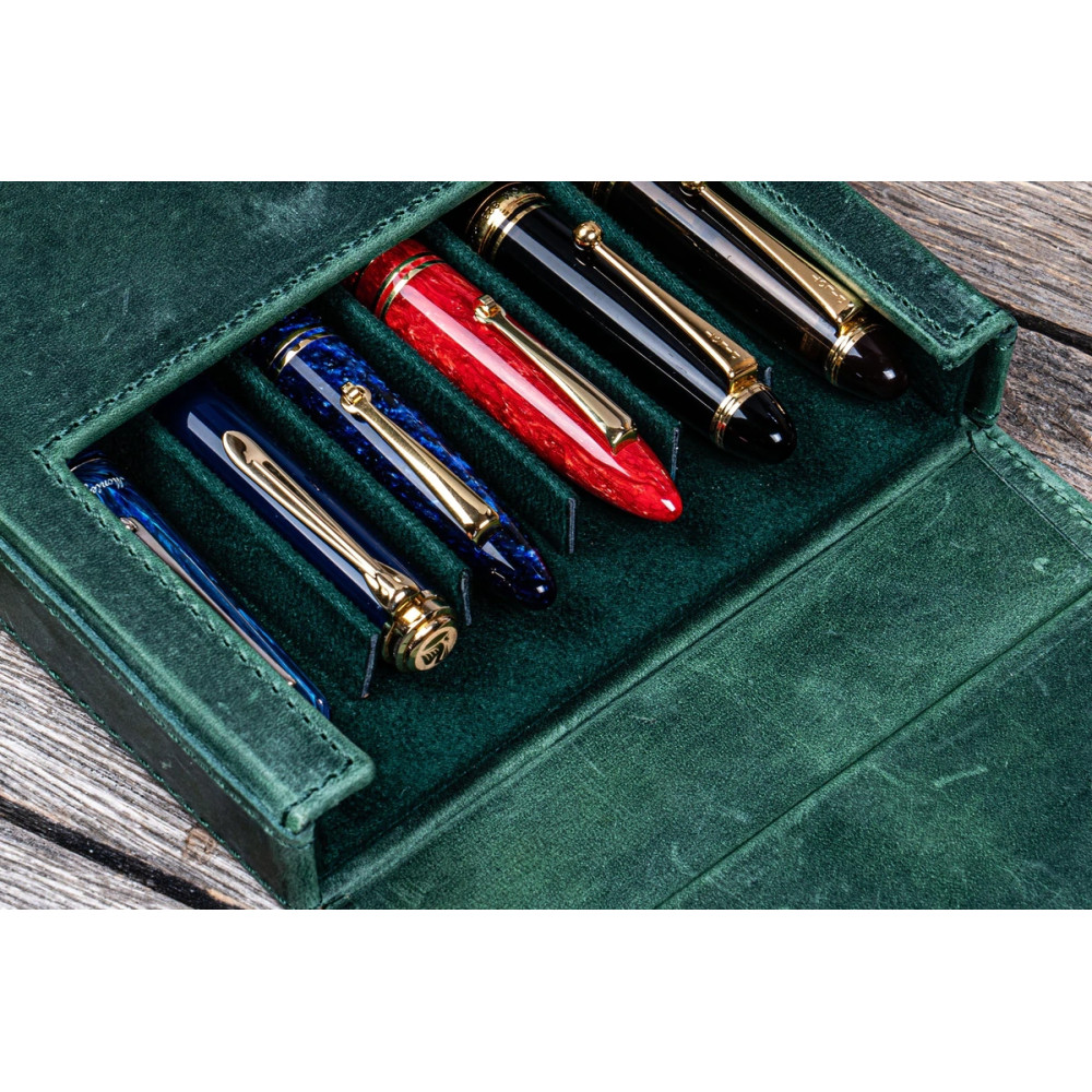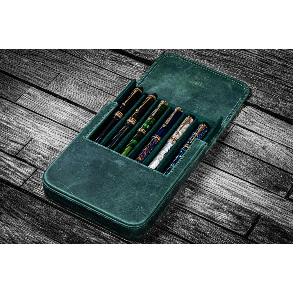 土耳其 Galen Leather 蓋倫皮革 6支裝 硬質可分離 筆盒(瘋馬森林綠)