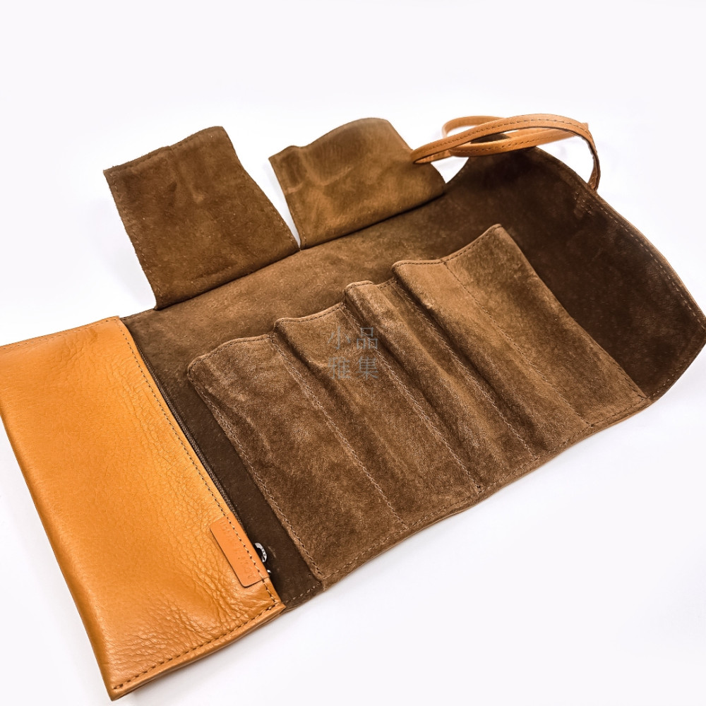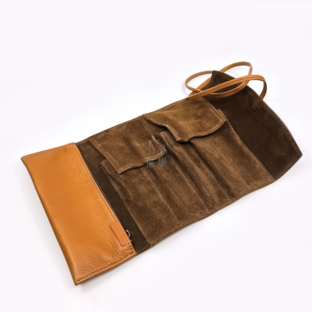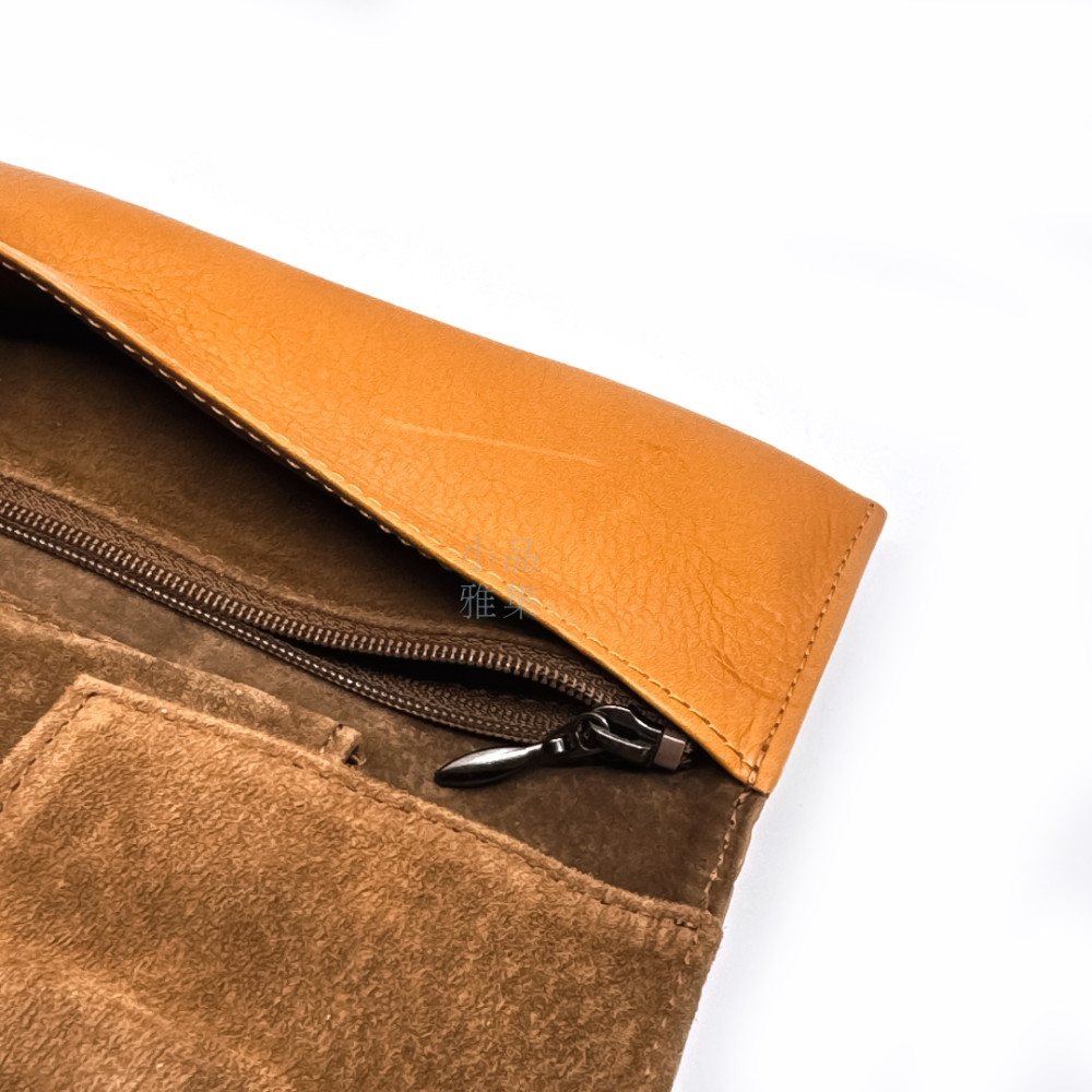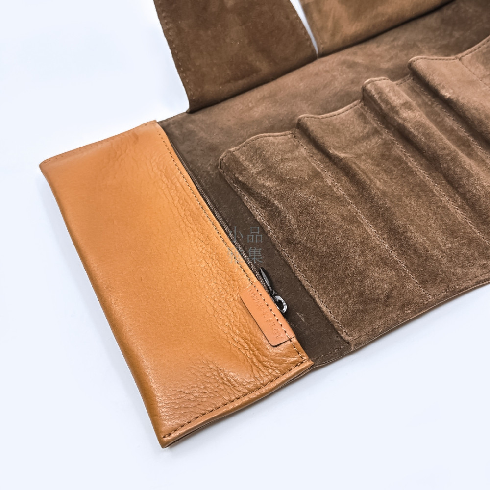 日本 PILOT 百樂 5支裝 附加拉鍊收納袋 真皮 筆袋(棕色)