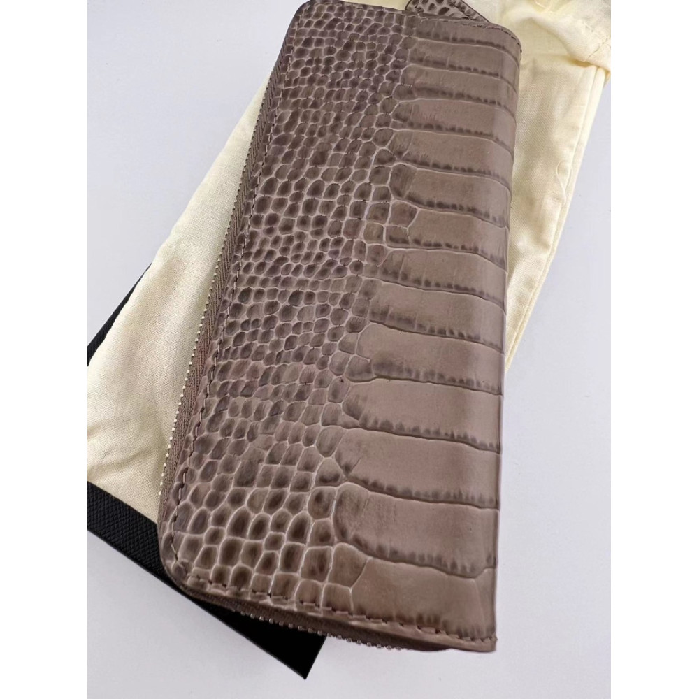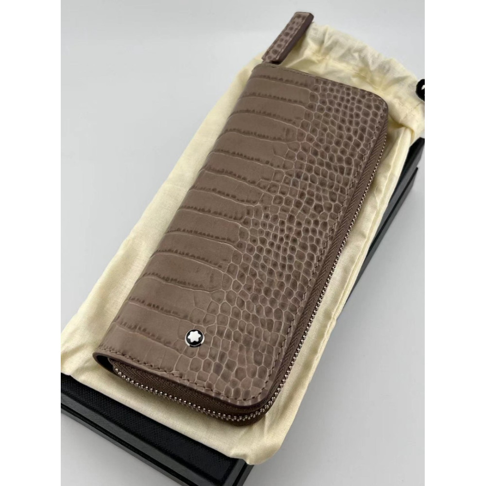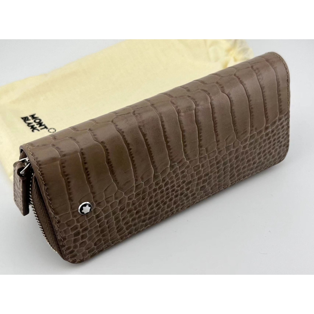 德國 MONTBLANC 萬寶龍 灰褐色 小牛皮 二支入 拉鍊式 筆袋 (113340)