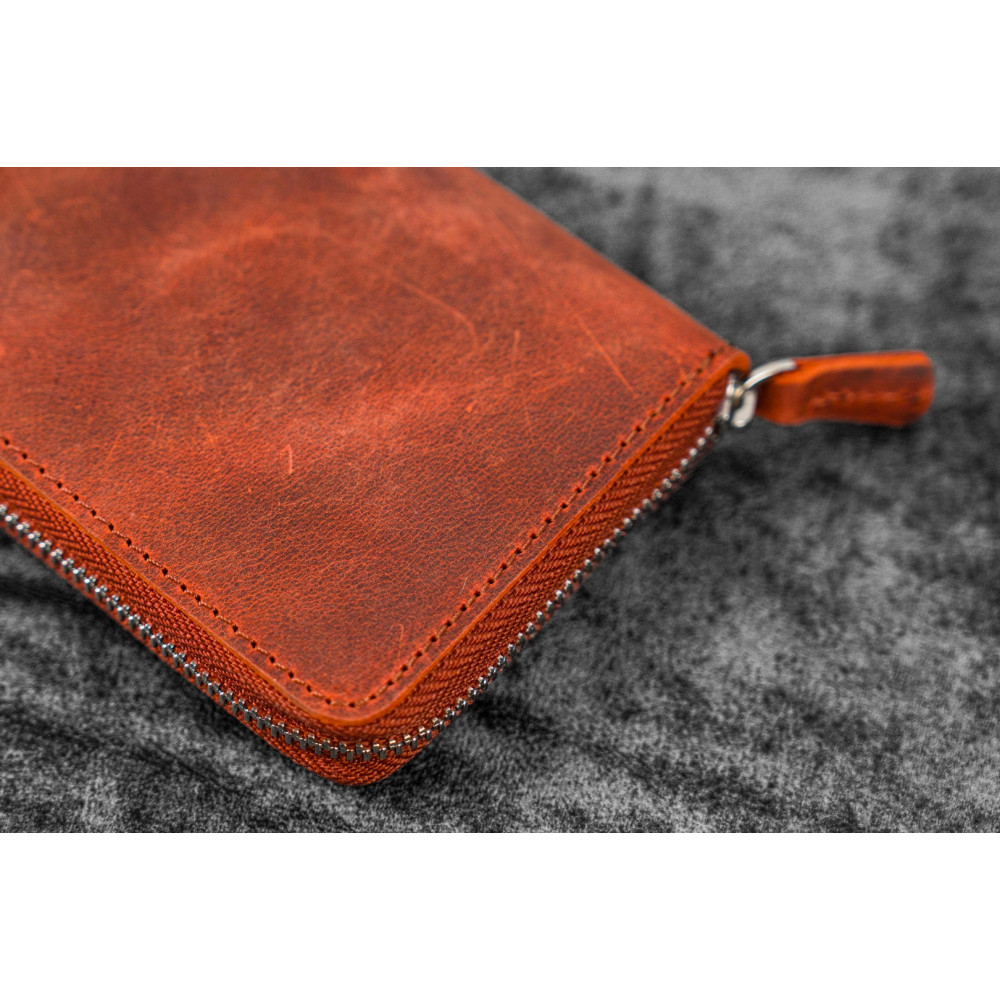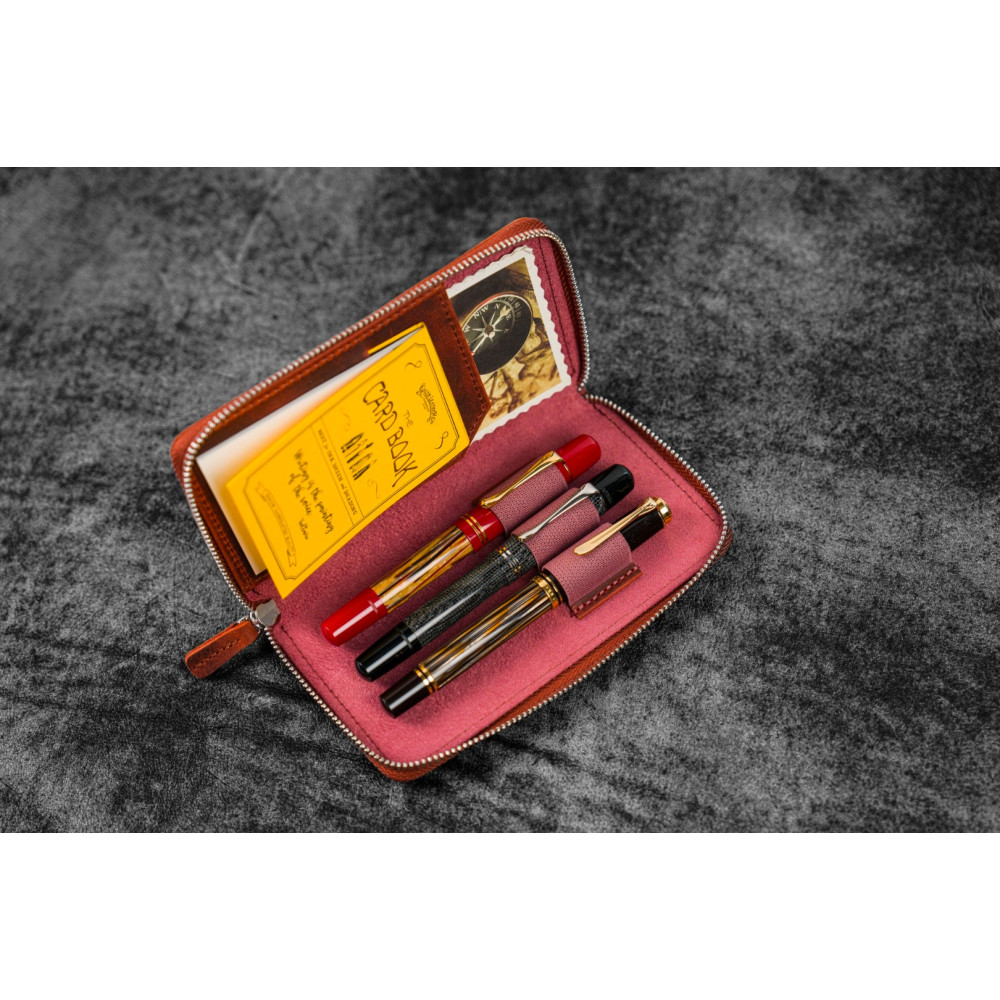 土耳其 Galen Leather 蓋倫皮革 3支入 卡夾 拉鍊式 兩用筆套 (瘋馬皮橘)