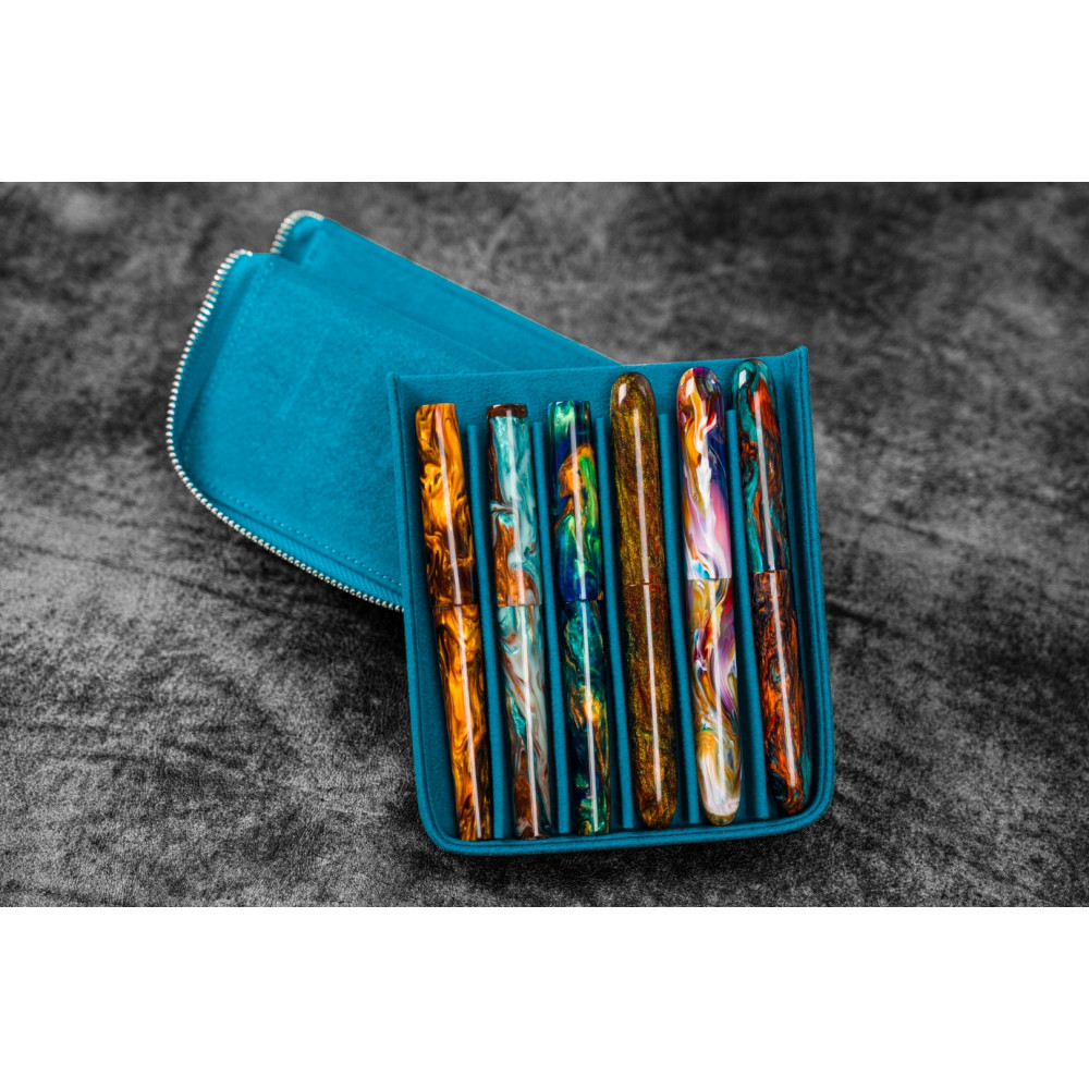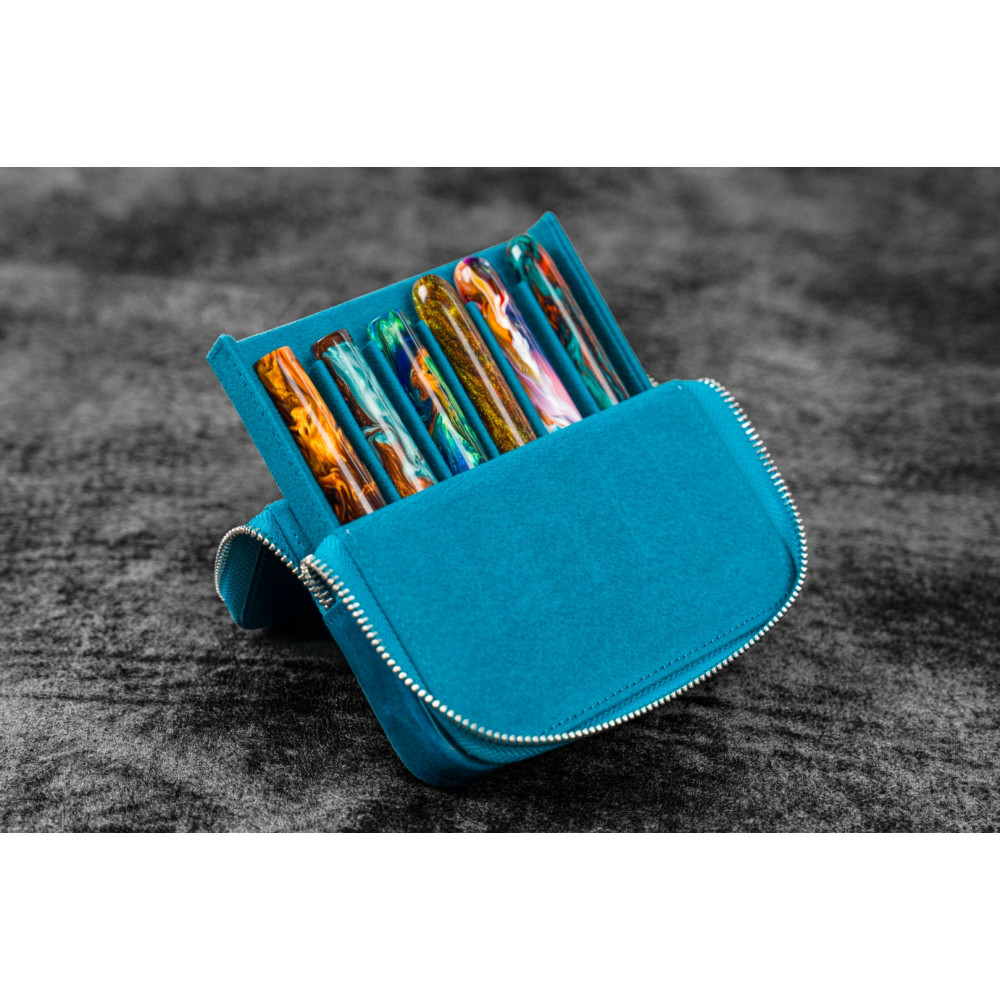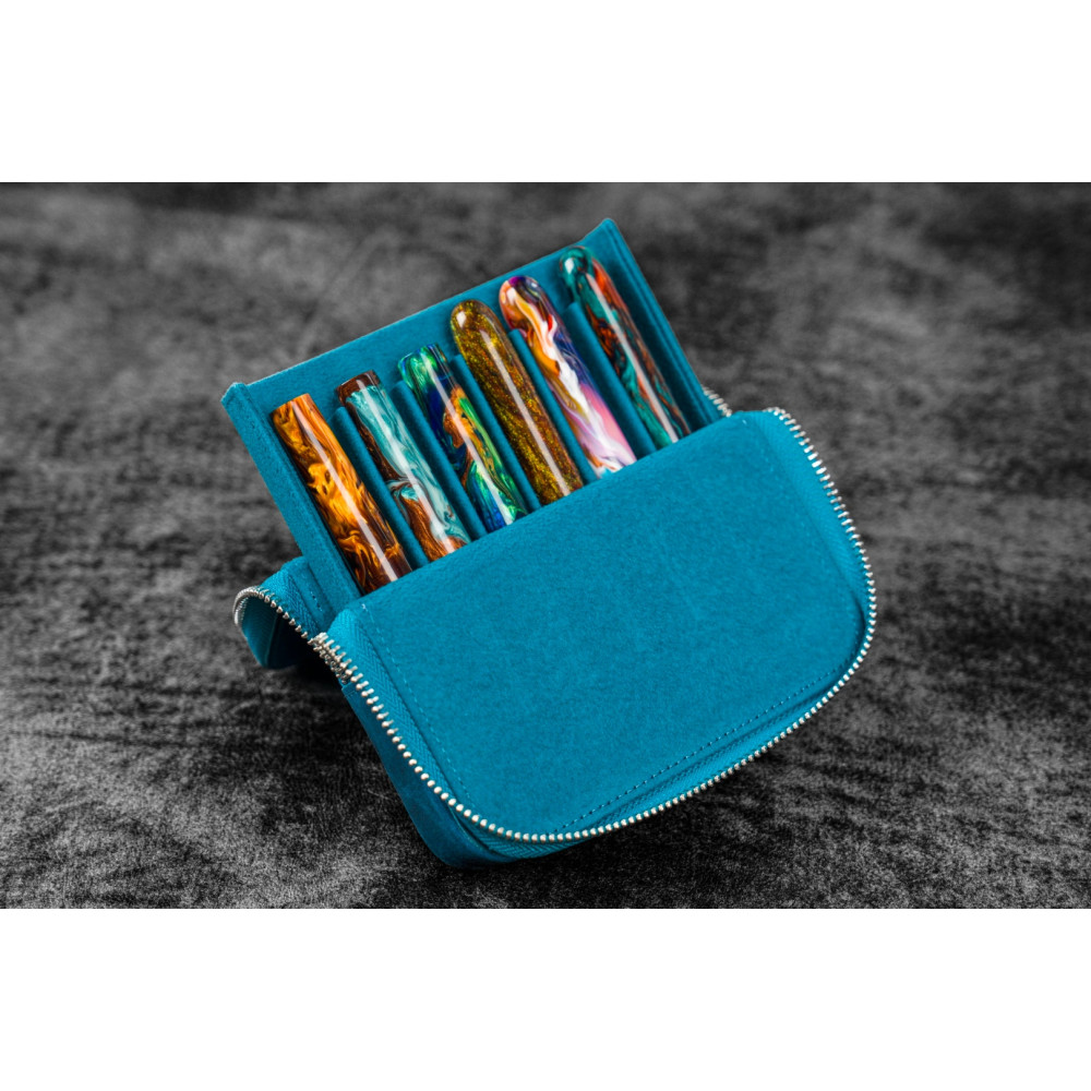 土耳其 Galen Leather 蓋倫皮革 6支入 磁吸直立式 拉鍊筆套(土耳其藍)
