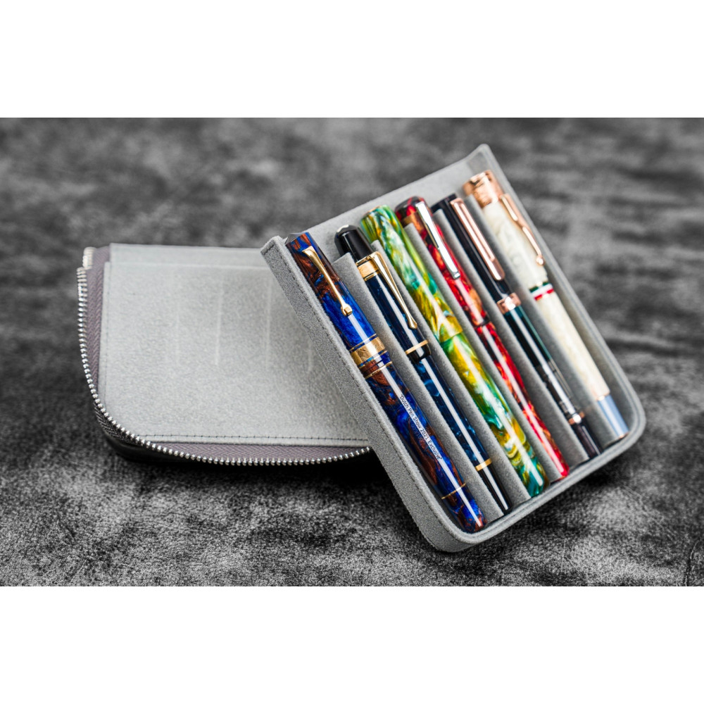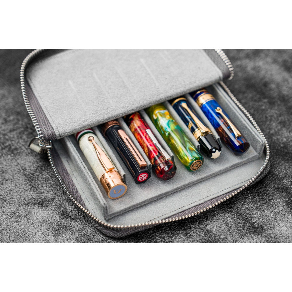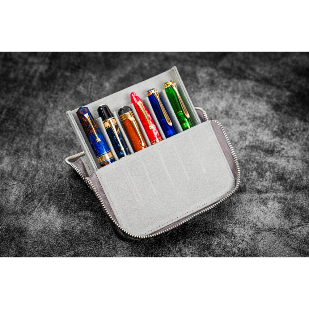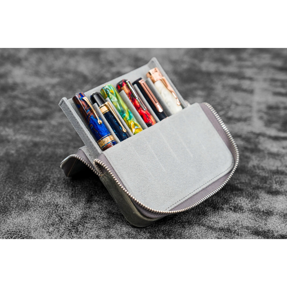 土耳其 Galen Leather 蓋倫皮革 6支入 磁吸直立式 拉鍊筆套(瘋馬皮煙灰)