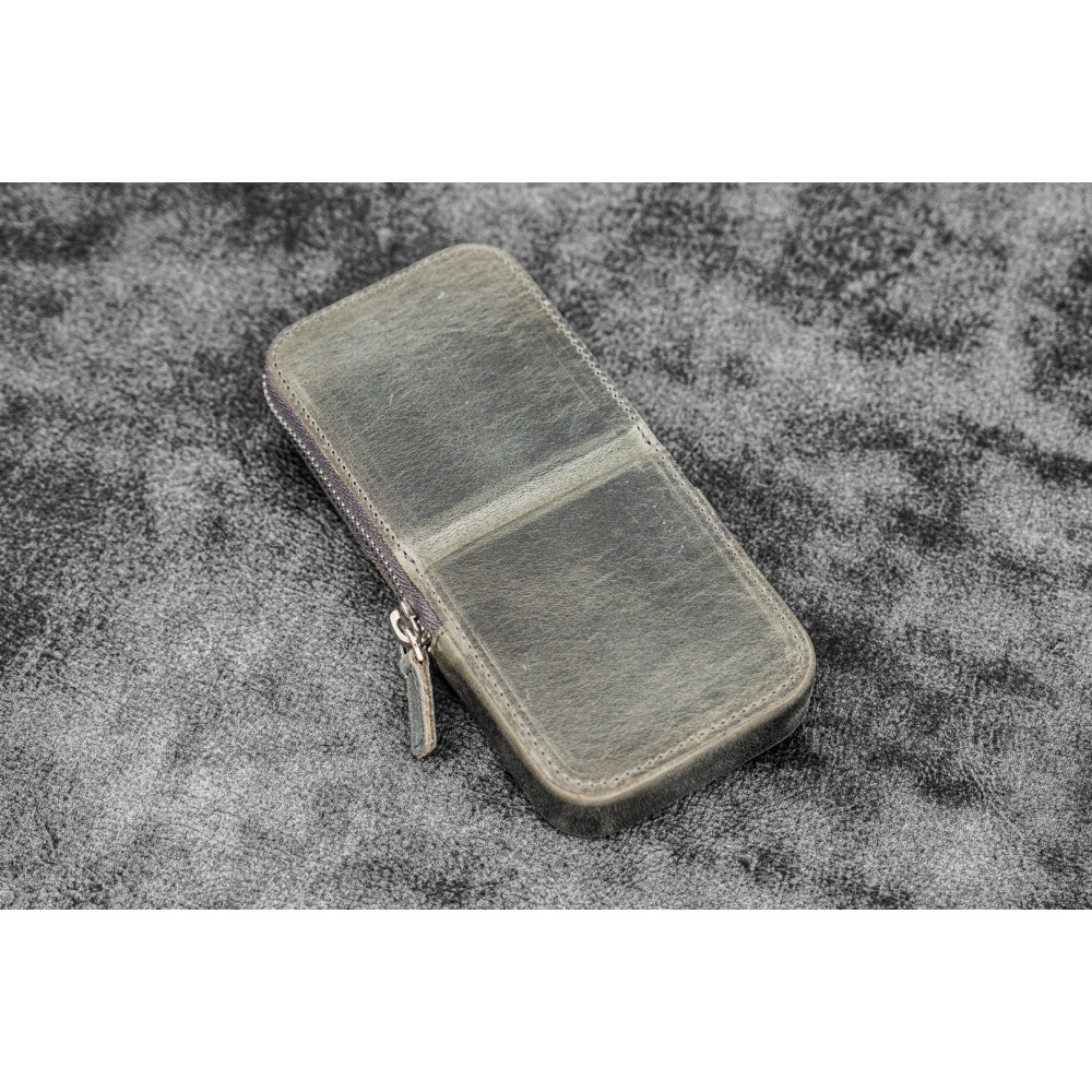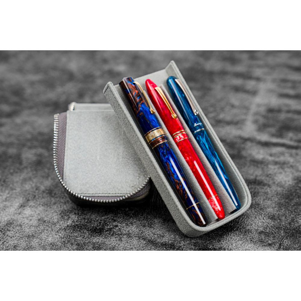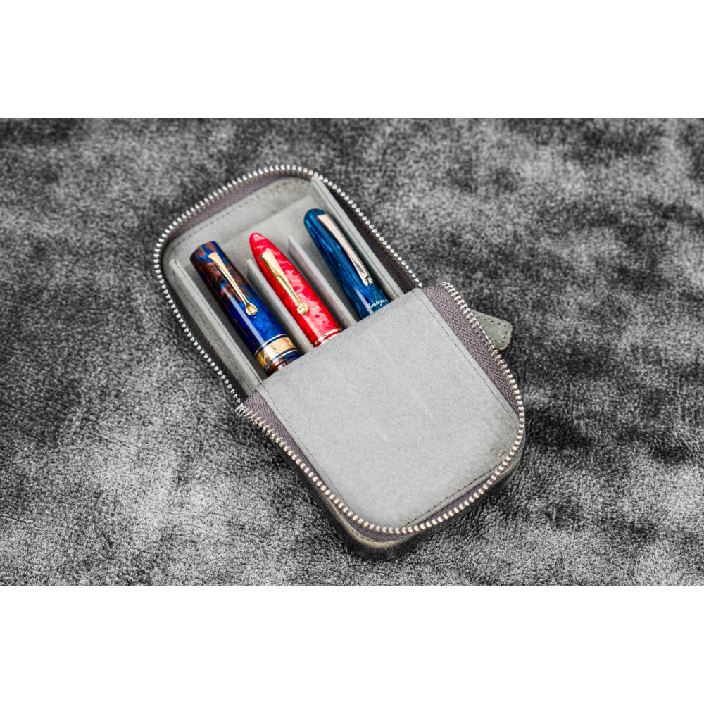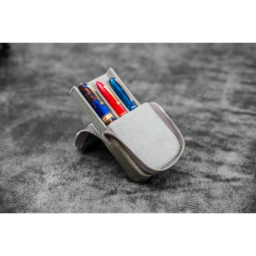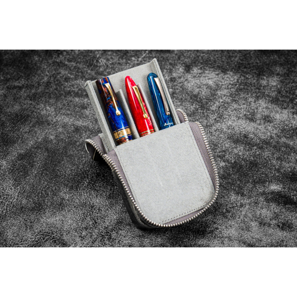 土耳其 Galen Leather 蓋倫皮革 3支入 磁吸直立式 拉鍊筆套(瘋馬皮煙灰)