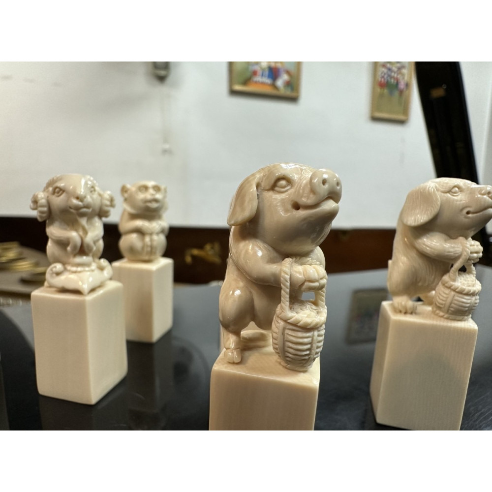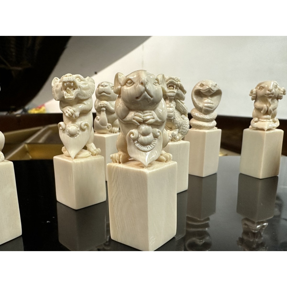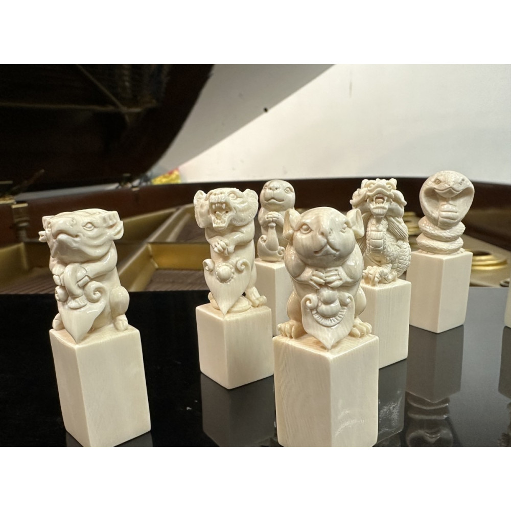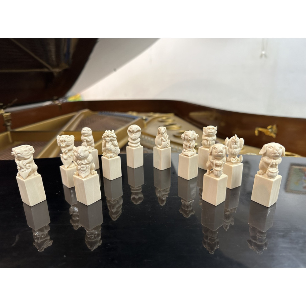 猛瑪飾界|合法猛瑪象牙印章 《動物馬拉松》十二生肖象牙印章套組