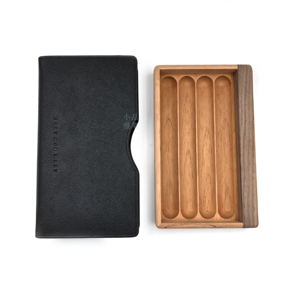 小品雅集 實木 皮革 攜帶型 四入 雪茄盒(沉穩黑)