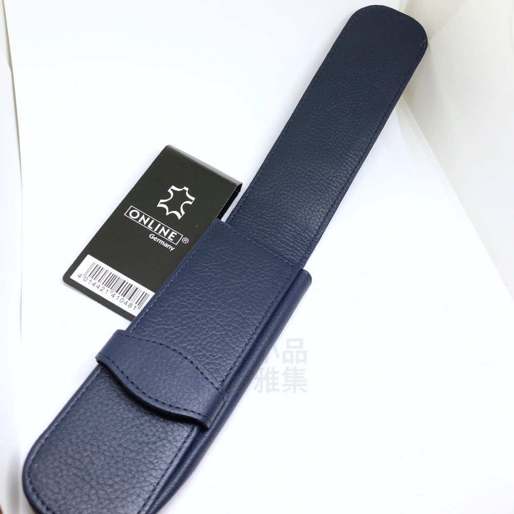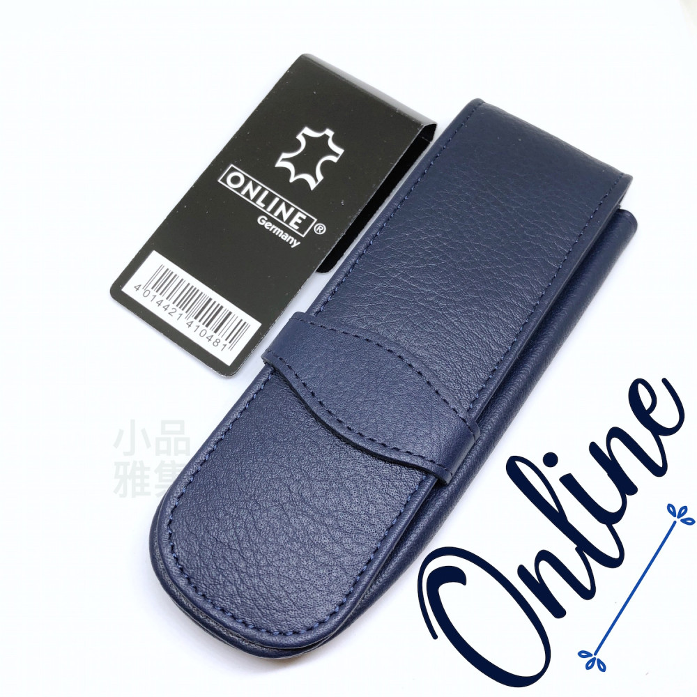 德國 online 小牛皮 二支裝皮質壓紋 筆袋(藍色)