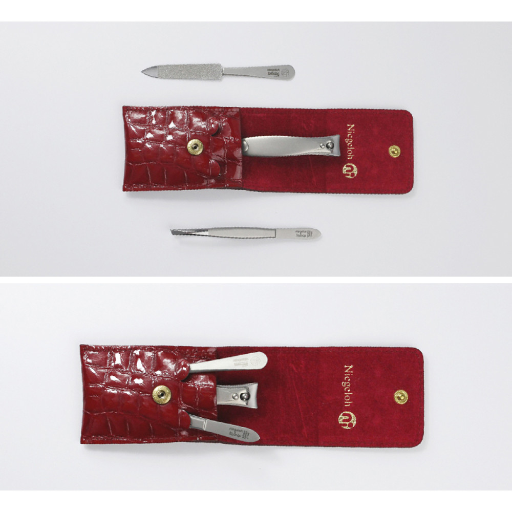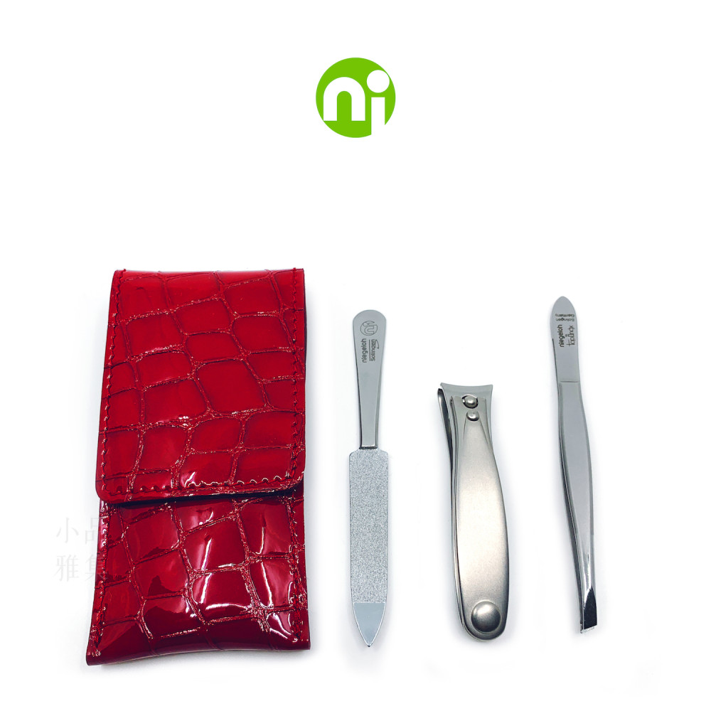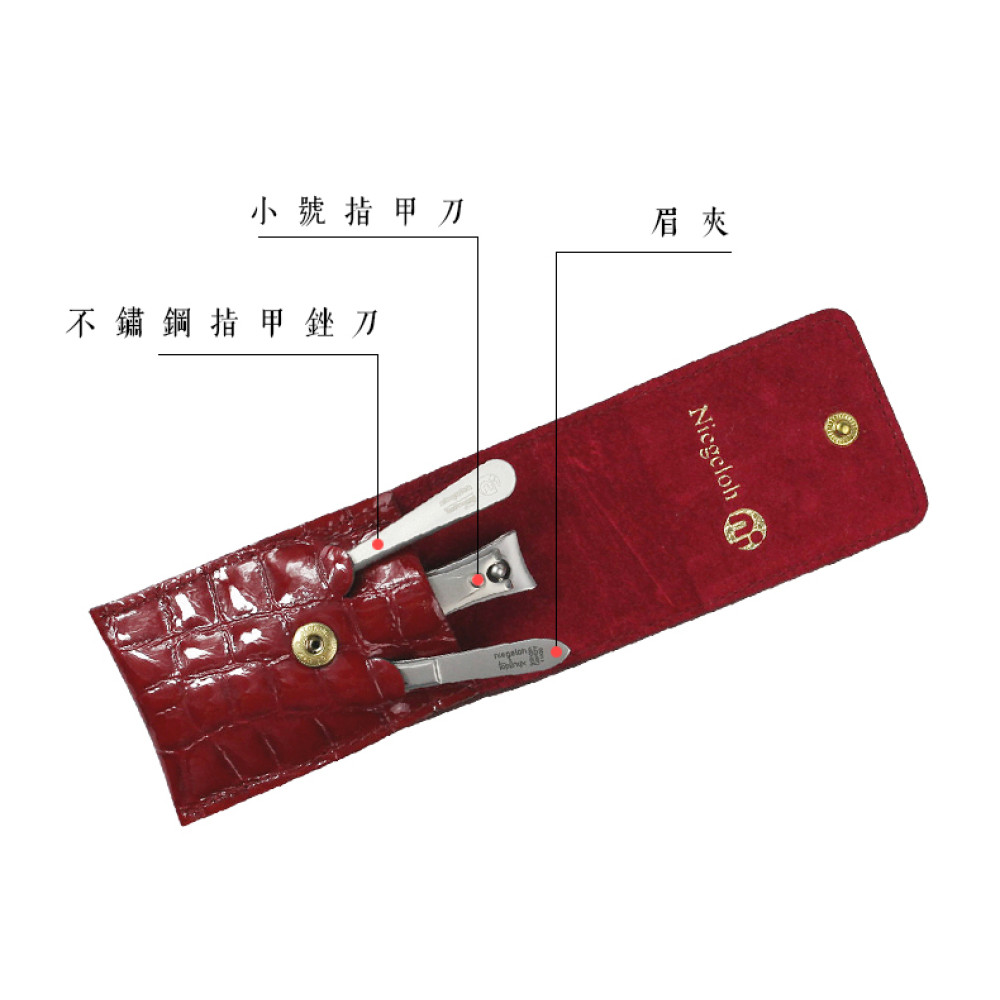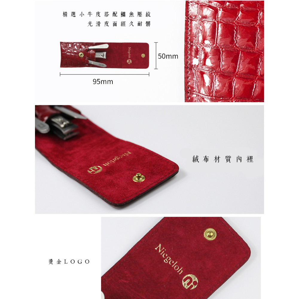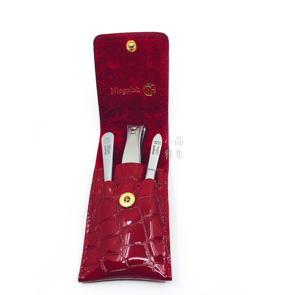 德國 Niegeloh 尼格魯 不鏽鋼修甲旅行3件組(紅色真皮皮套)(89518)
