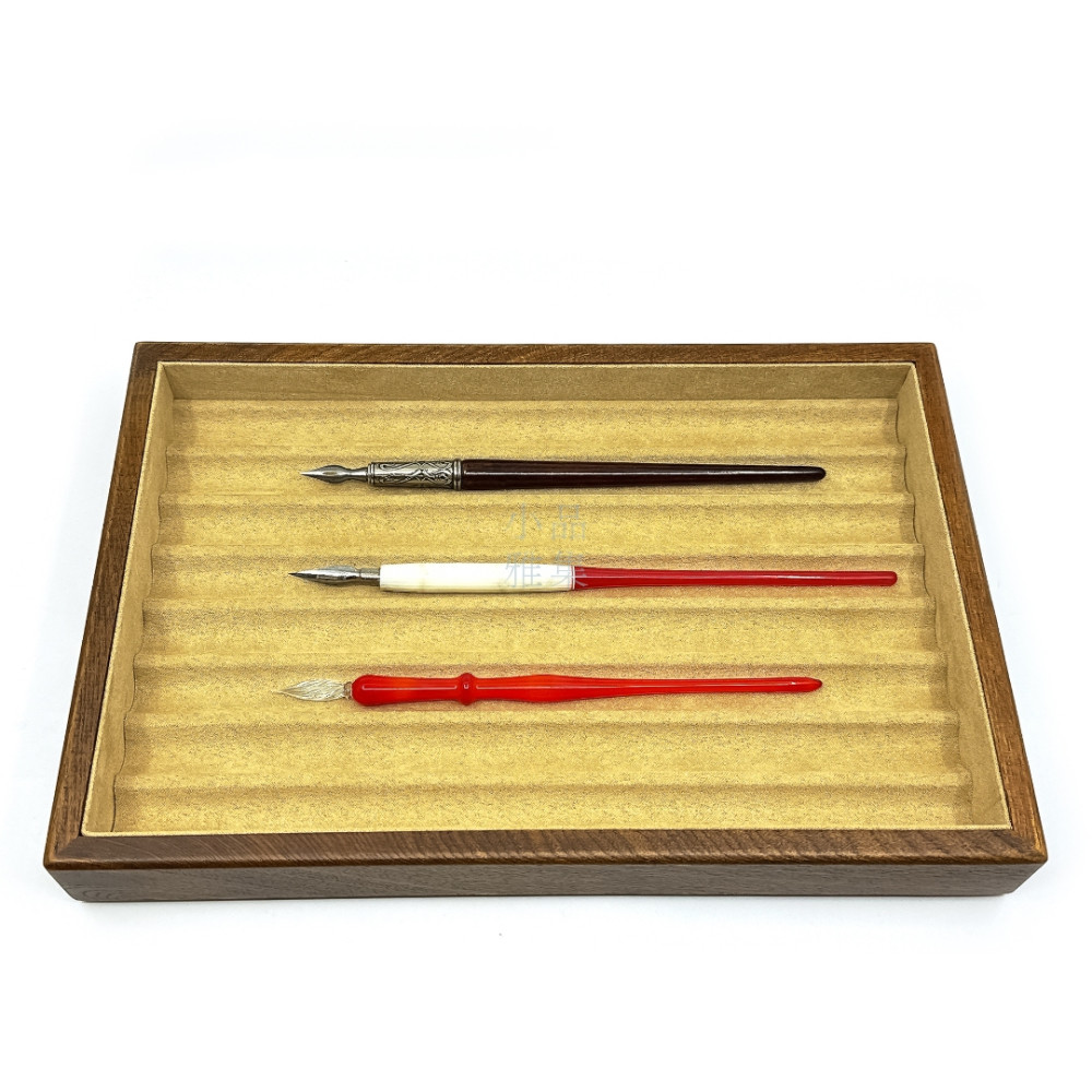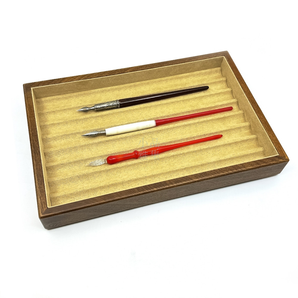 【每支筆都值得被珍藏】獨家訂製款 榆木 絨布筆盤 8支入 沾水筆/檯筆 長型筆可用 展示盤