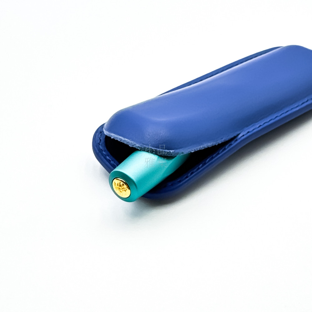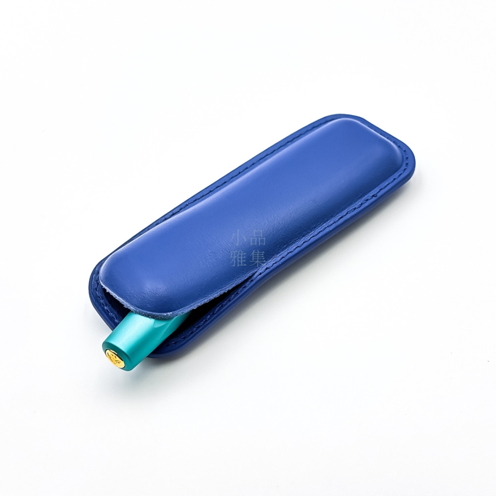 小品雅集訂製 短鋼筆專用 無隔層二支入 真皮皮套 筆套(電光藍)