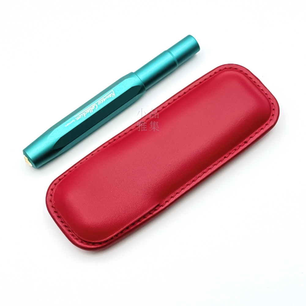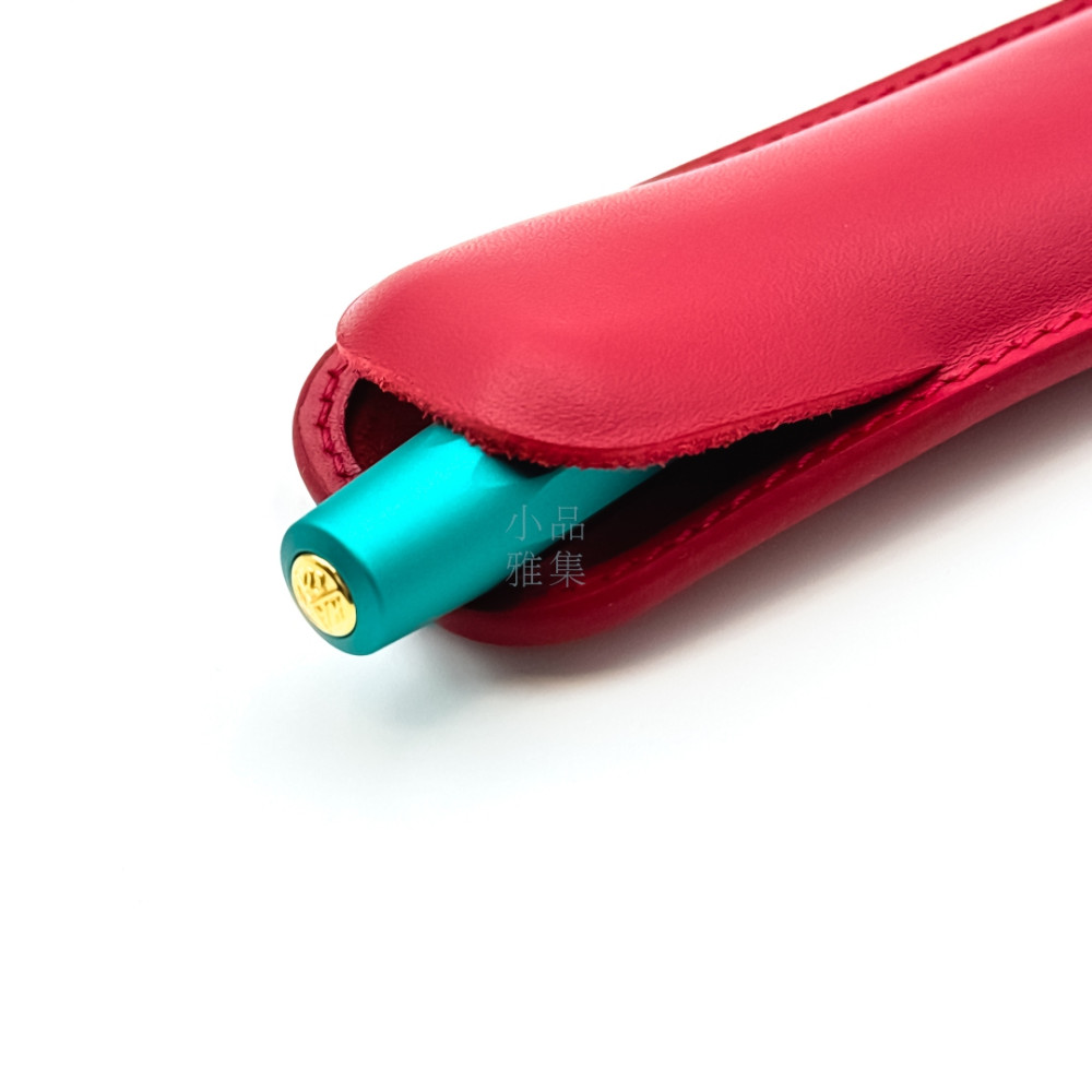 小品雅集訂製 短鋼筆專用 無隔層二支入 真皮皮套 筆套(中國紅)