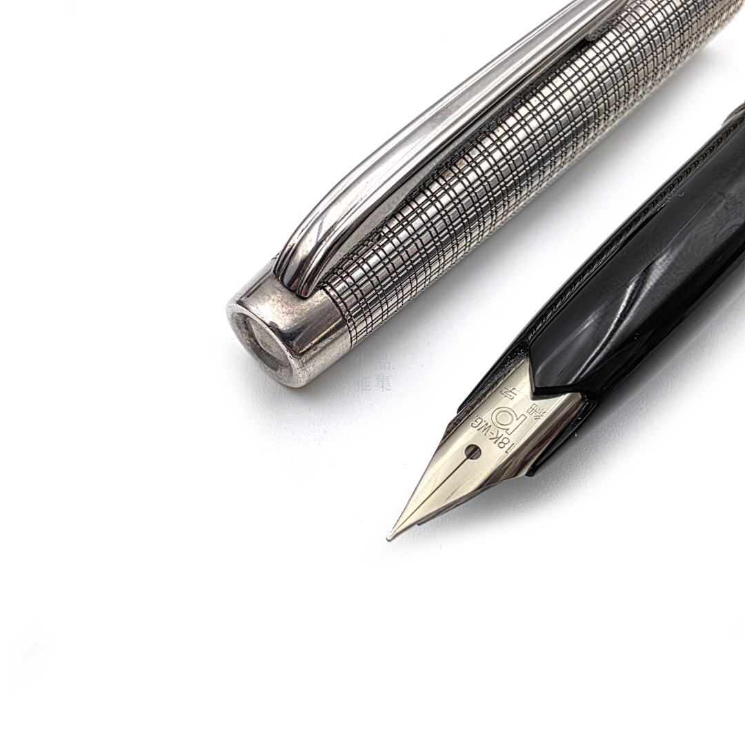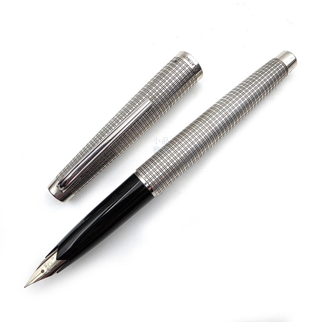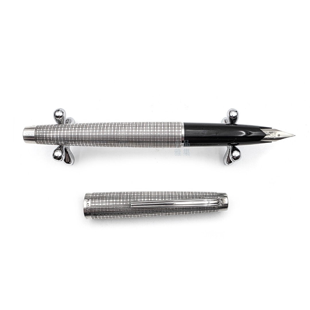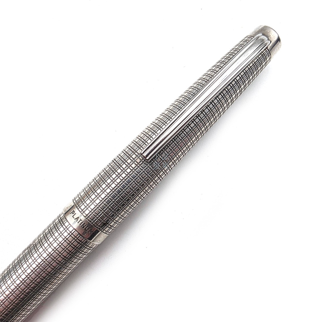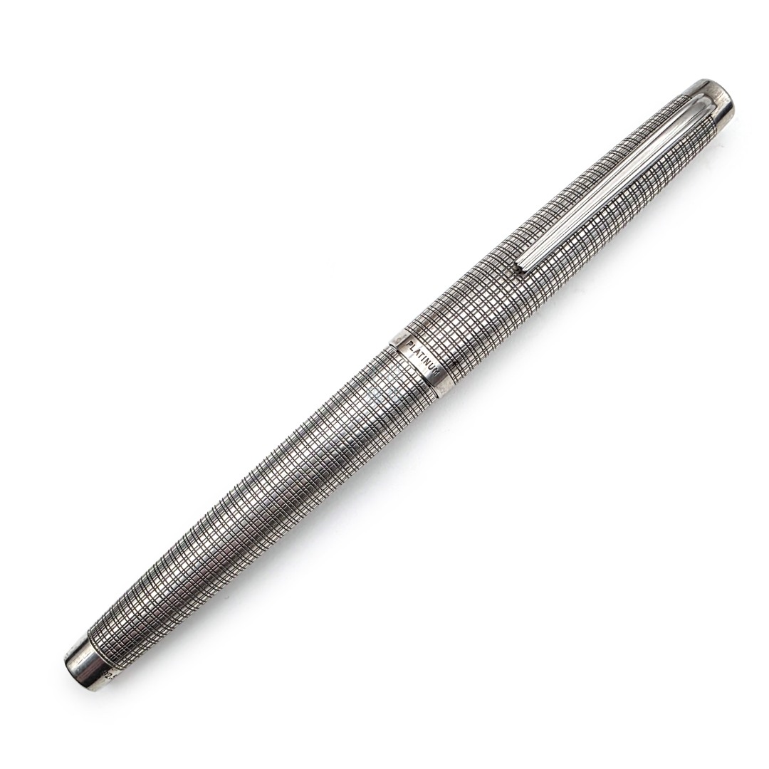 ☆ 中古美品 ☆ PLATINUM 白金 老款 18K WG尖 925純銀 大銀桿 銀格紋 MT-21603