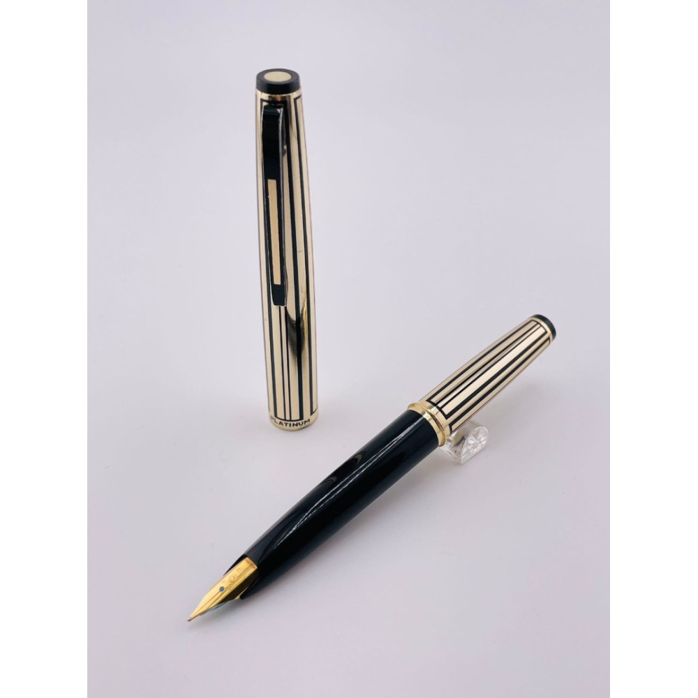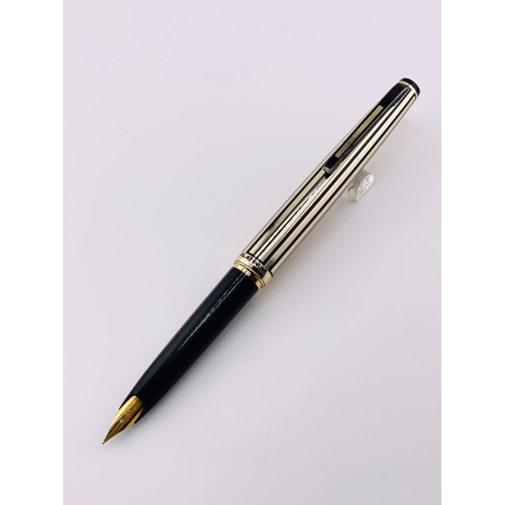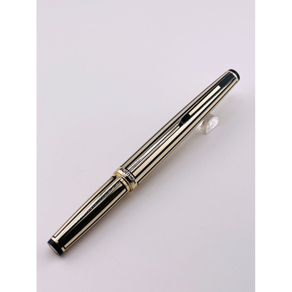 ⭐中古品 ⭐ 白金牌 條紋鍍金 鋁桿 短型 18KWG 鋼筆