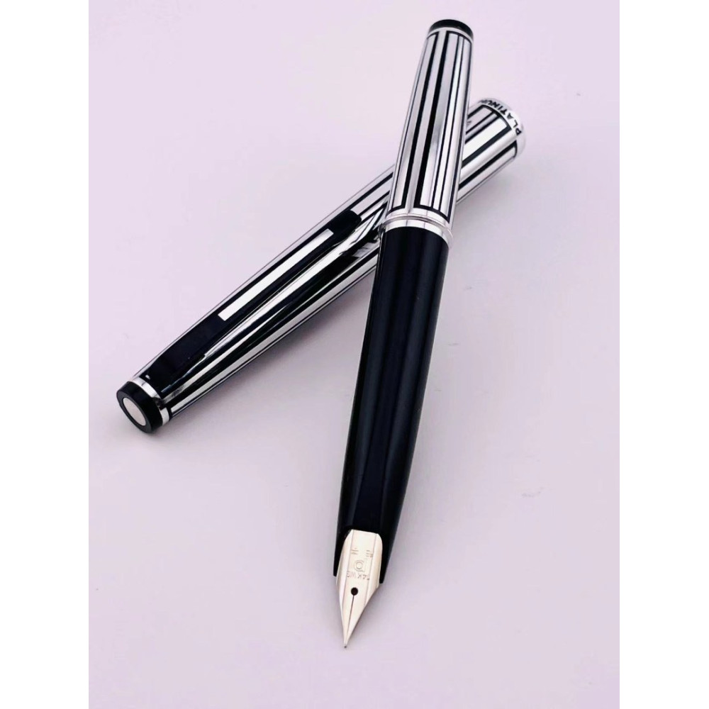 ☆ 中古美品 ☆ PLATINUM 白金 絕版品 鋁合金筆桿14Kwg 短鋼筆(細) 亮鉻銀