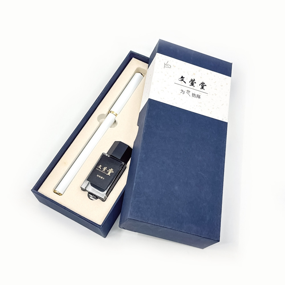 中國 文萱堂 鋼筆式毛筆 小楷 墨水禮盒組(瓷白色)