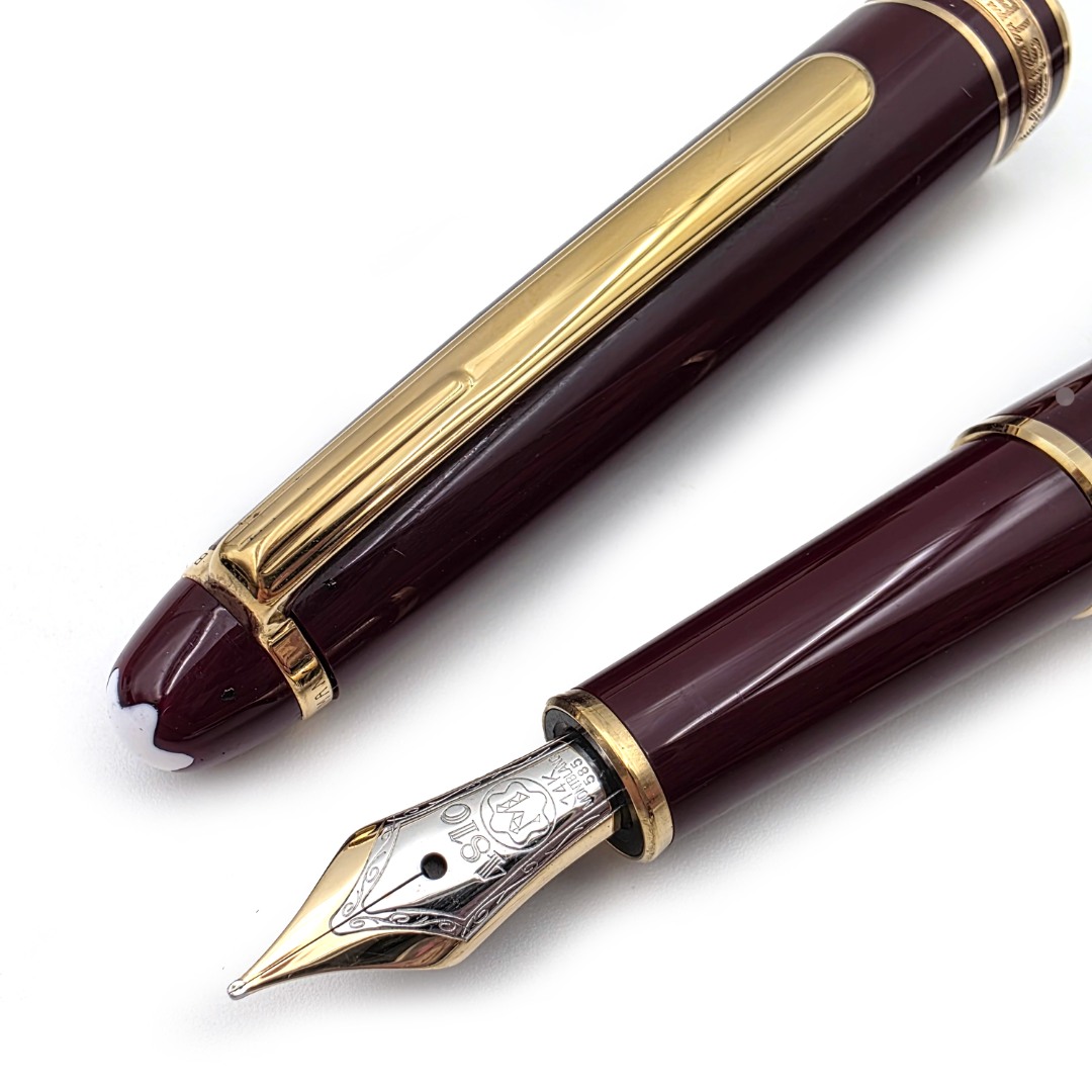 ☆典藏老筆☆ 德國 MONTBLANC 萬寶龍 144 - F尖 雙色 鋼筆 M-41859 (9成新)-酒紅色-