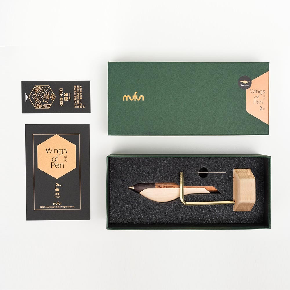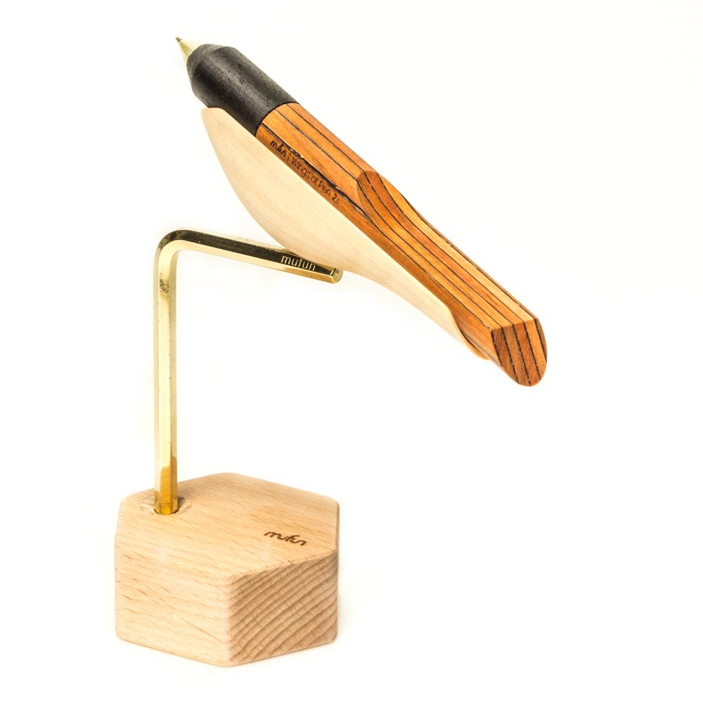 【木趣 | 啄墨2.0】拼木版單筆 + 筆座 - 兼具擺飾與書寫的原木手工藝筆【麻雀】
