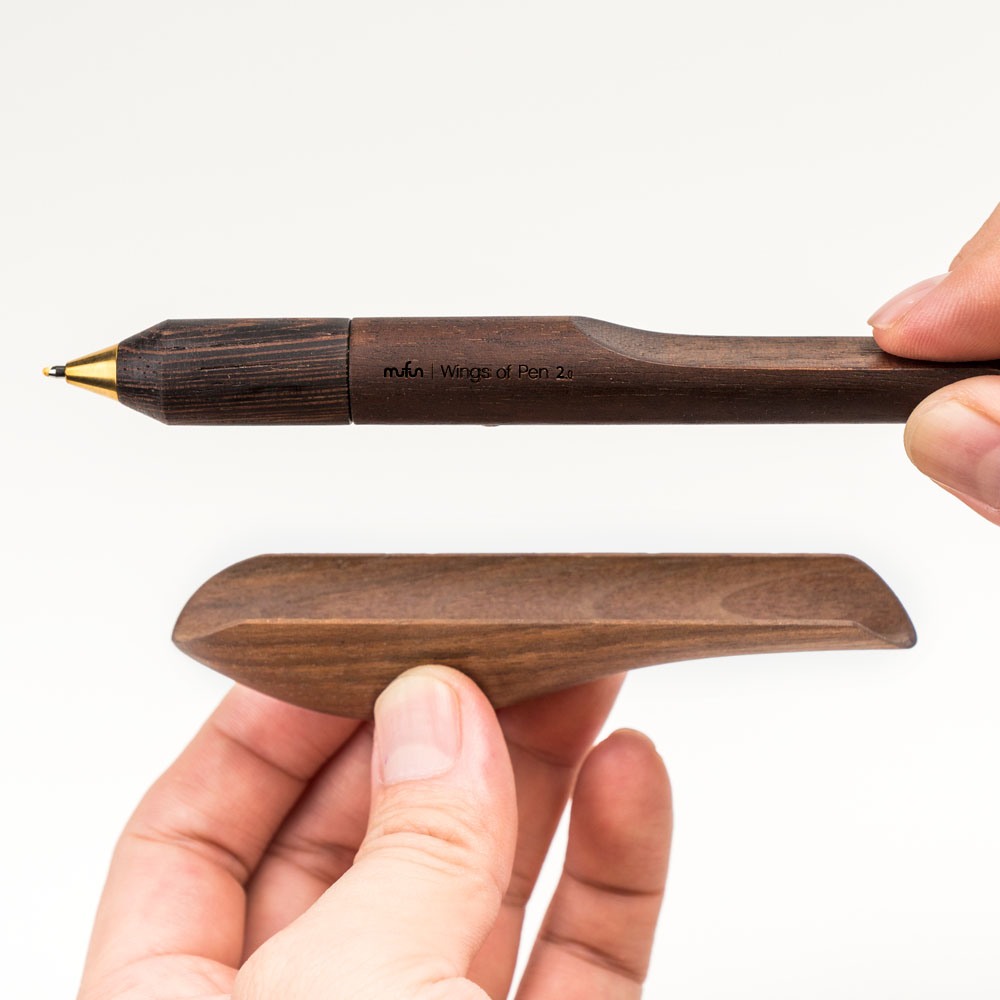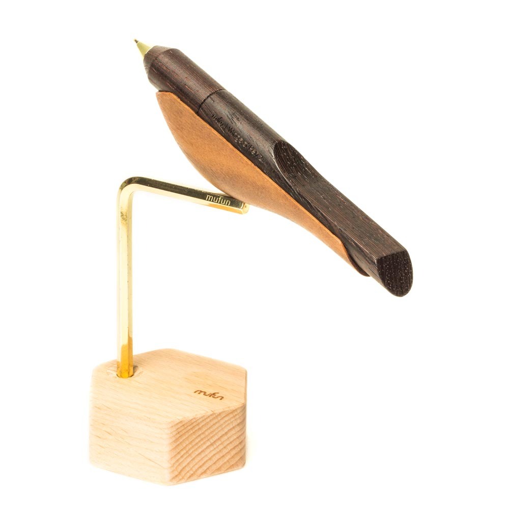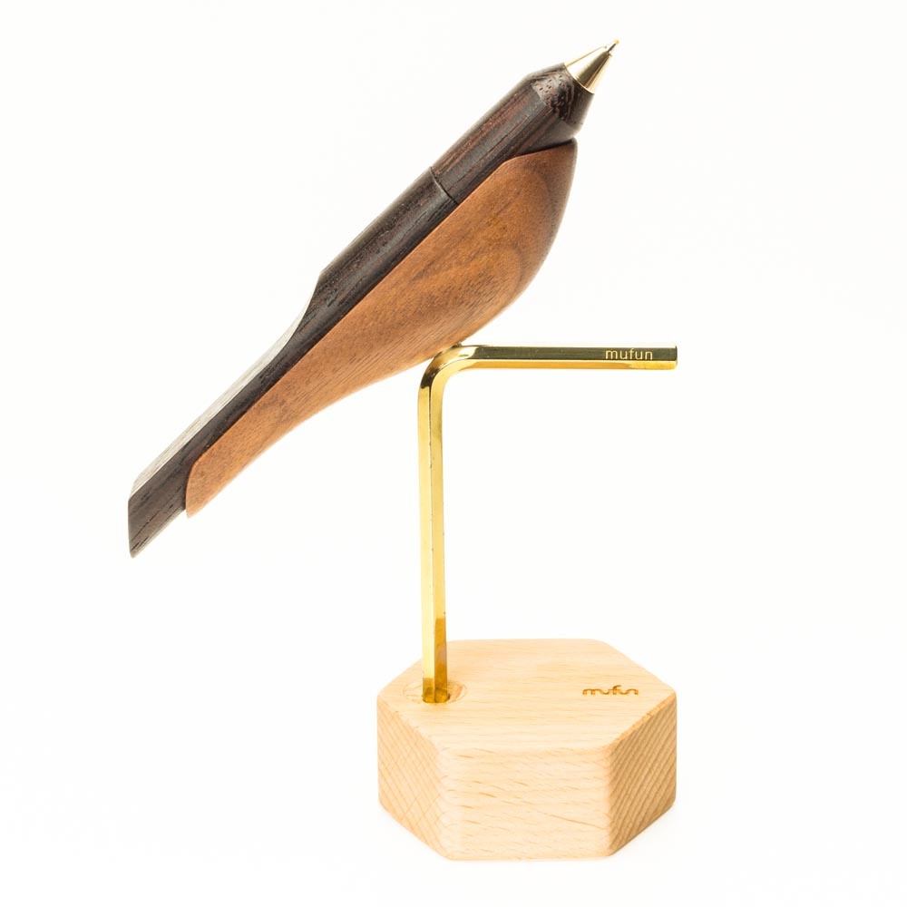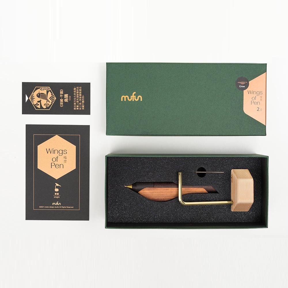 【木趣 | 啄墨2.0】實木版單筆 + 筆座 - 兼具擺飾與書寫的原木手工藝筆【烏鴉】