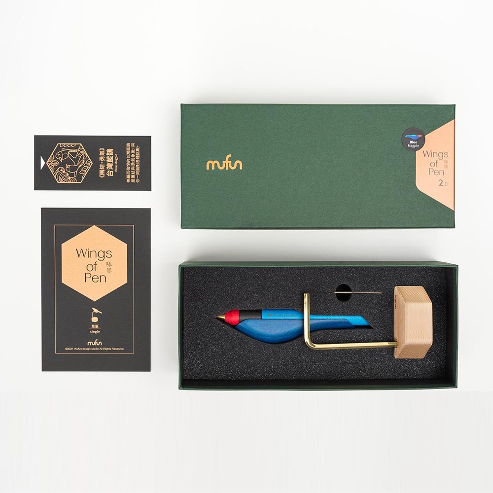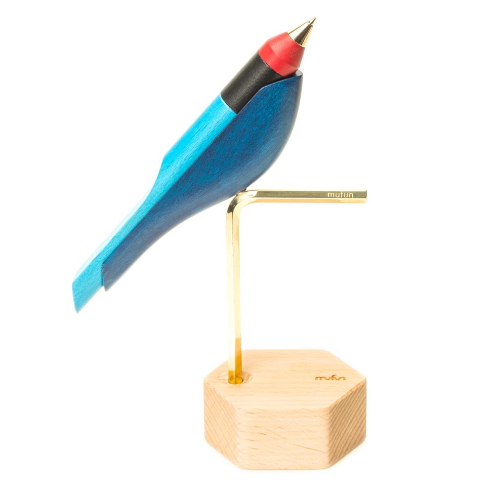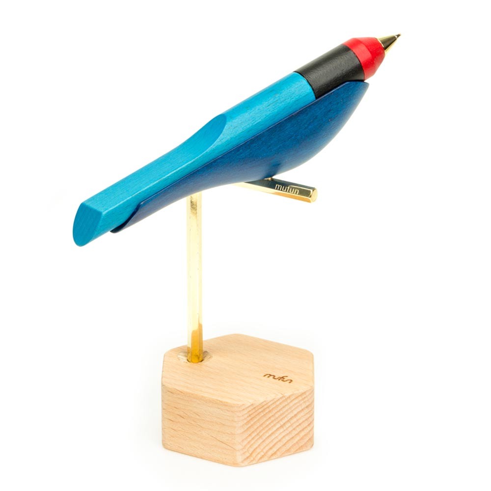 【木趣 | 啄墨2.0】實木版單筆 + 筆座 - 兼具擺飾與書寫的原木手工藝筆【藍鵲】