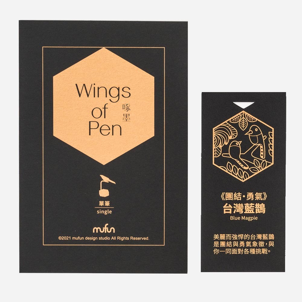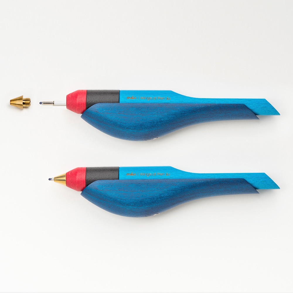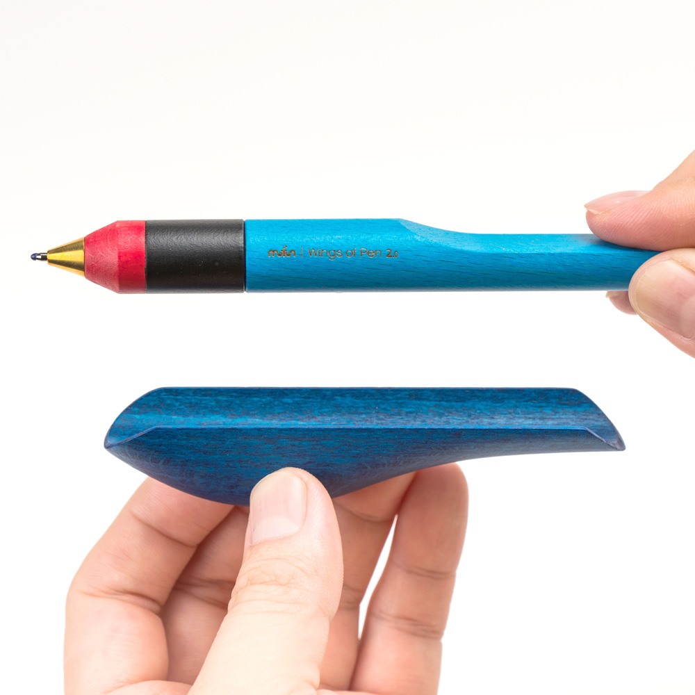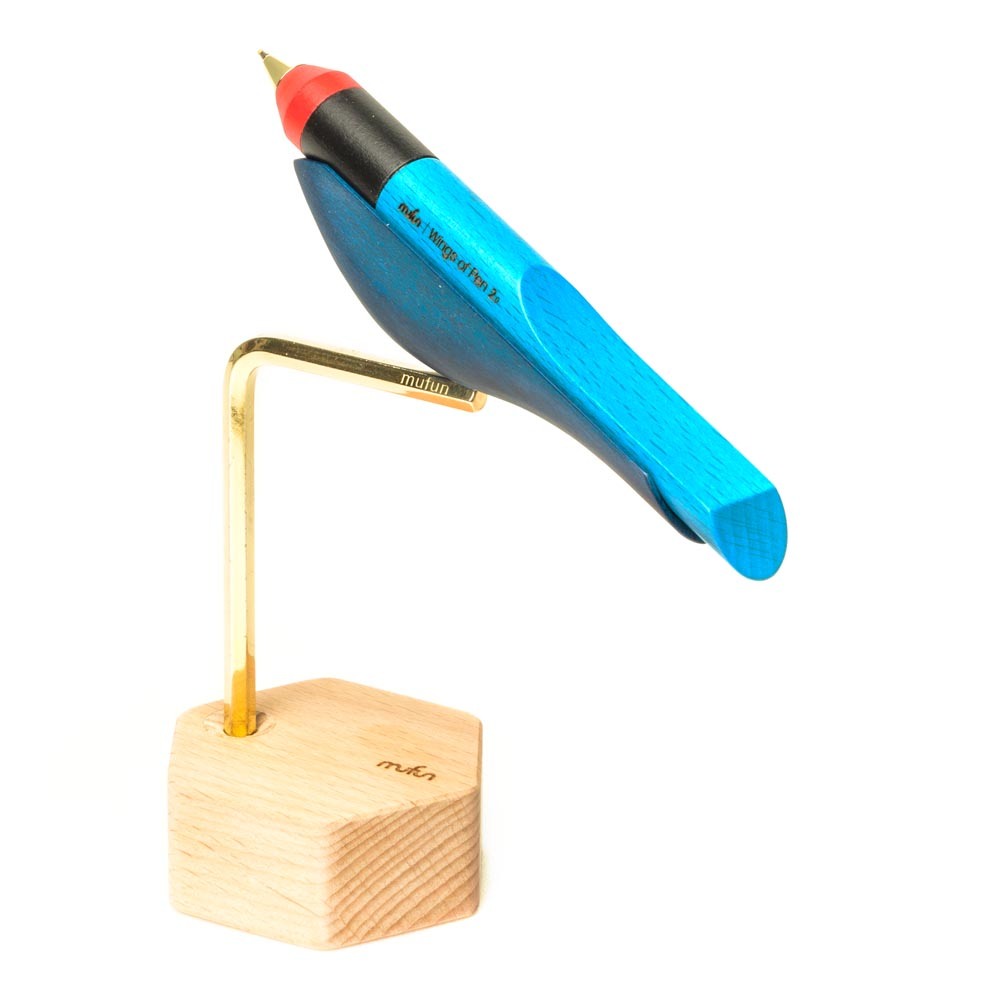 【木趣 | 啄墨2.0】實木版單筆 + 筆座 - 兼具擺飾與書寫的原木手工藝筆【藍鵲】