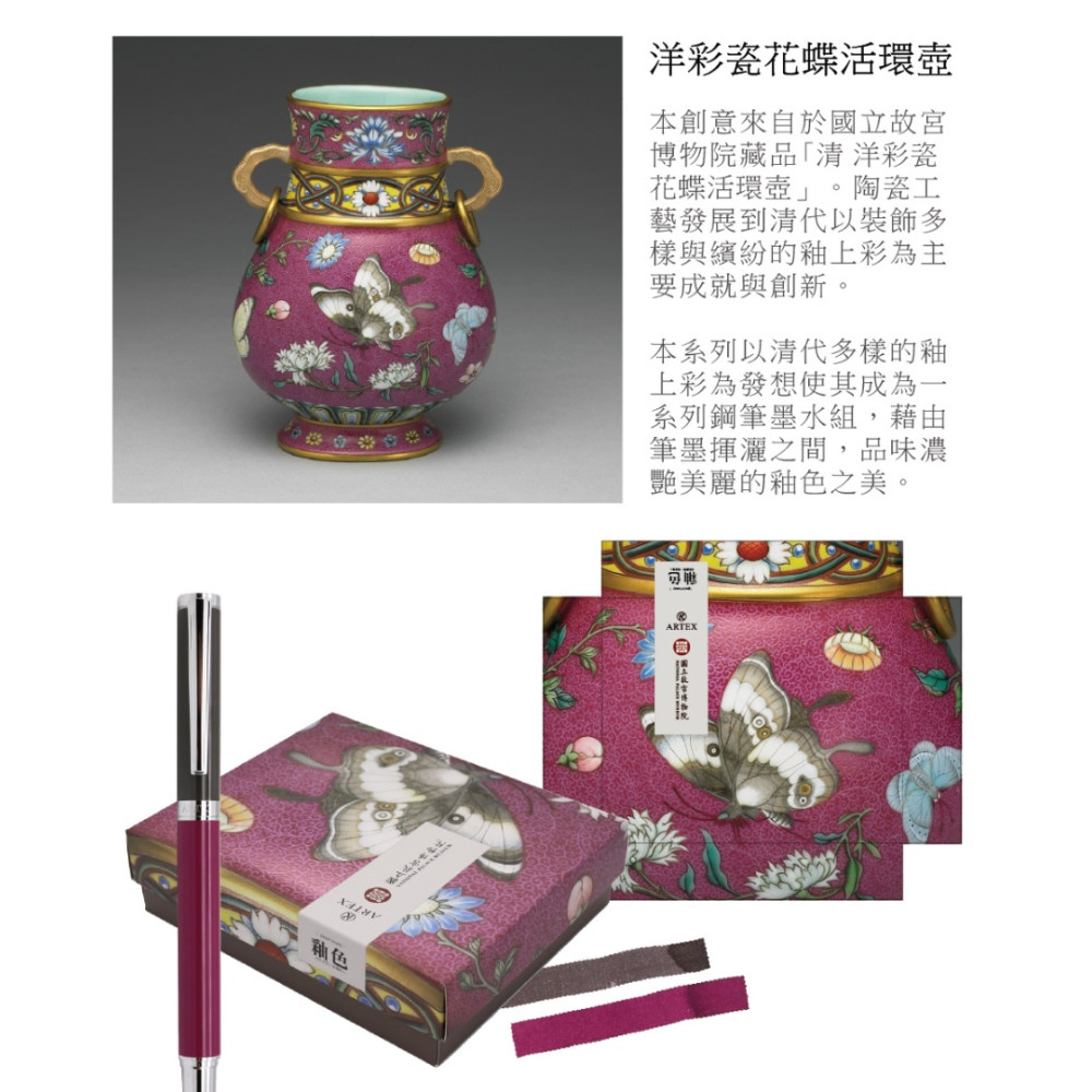 ARTEX 雅特仕 國立故宮聯名限定 釉色筆墨組 (洋彩瓷花蝶活環壺)