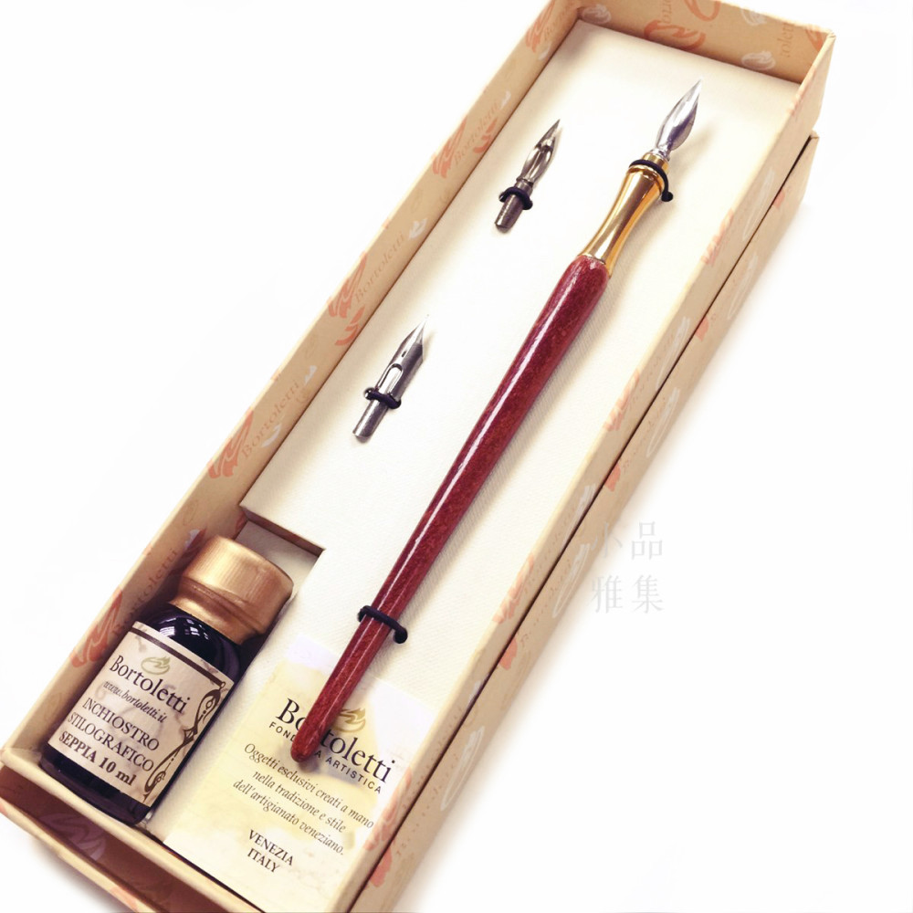 義大利 Bortoletti Set02 木質筆桿沾水筆+筆尖+墨水組(光滑握位)