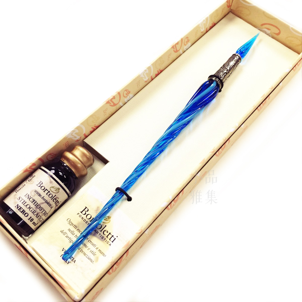 義大利 Bortoletti Set32 螺旋玻璃沾水筆+墨水組合(共七色可選)