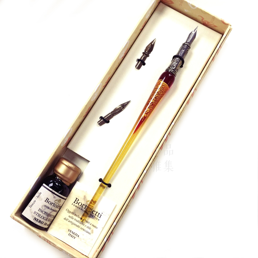 義大利 Bortoletti Set12 玻璃沾水筆+筆尖+墨水組(共有五色可選)