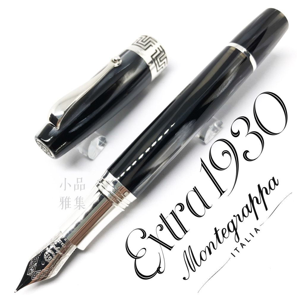 義大利 Montegrappa 萬特佳 Extra 1930 純銀 賽璐珞 18K金 鋼筆(竹炭黑)
