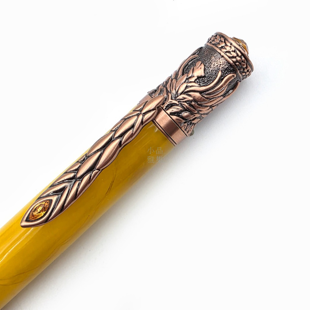 筆身的鳳凰羽翼層層交錯,如人生的軌跡,時而沉寂,時而飛揚,卻總在神的引領下邁向更高之處。