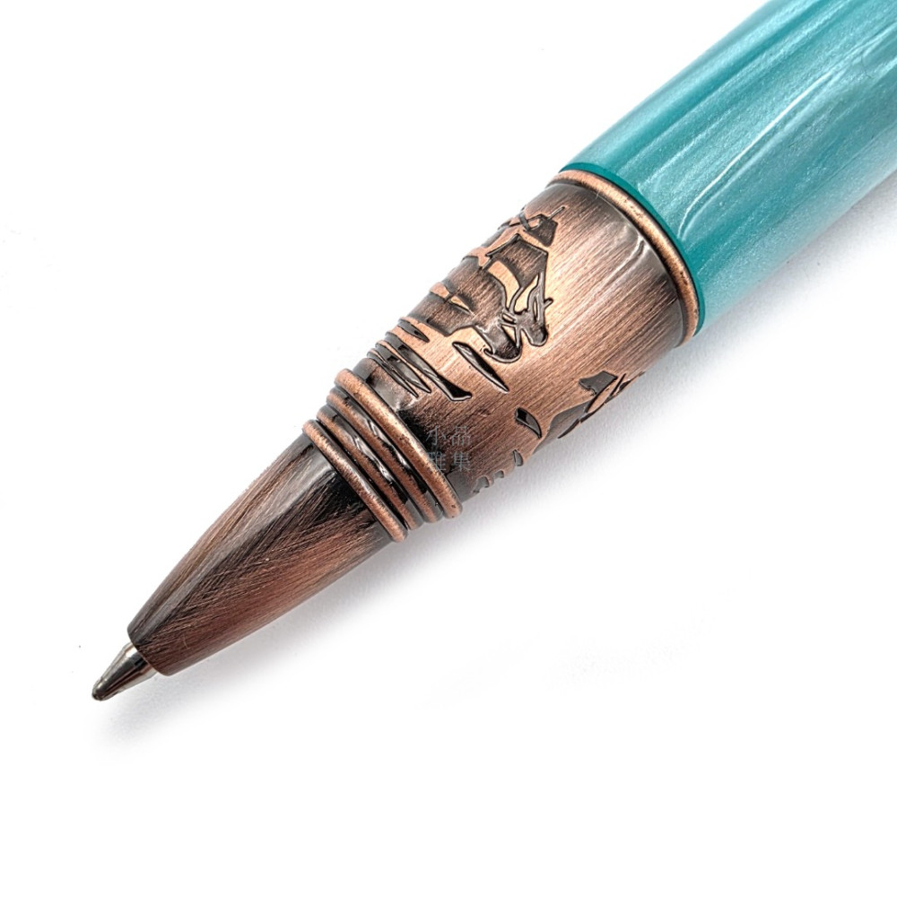PenLoco 燈塔原子筆以手工鑄造的銅色金屬筆飾,筆桿則是經典燈塔與海岸意象,彷彿凝結住無數航行者的信念與回望
