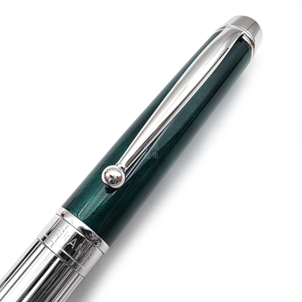• 筆身:銀色直紋雕刻搭配綠色花紋烤漆蓋,亮麗而耐看