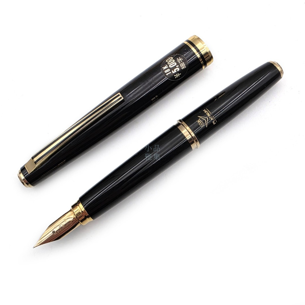 ☆典藏老筆☆ 白金牌 Old Platinum 黑桿 短鋼筆‘’18K金‘’筆尖 (曲面尖) F 隨機附贈墨水!