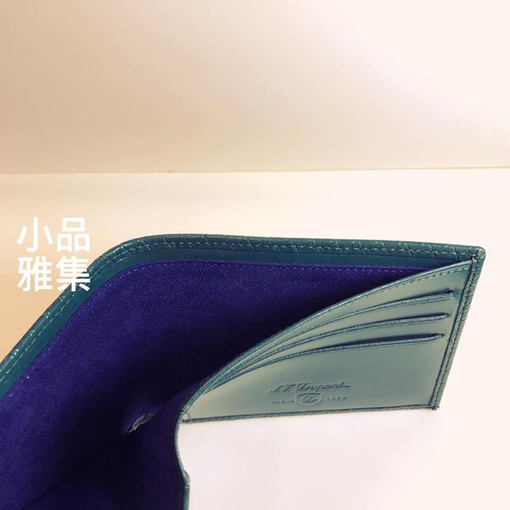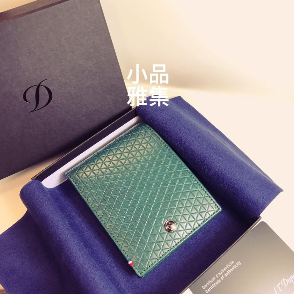 法國 S.T. DUPONT 都彭 六卡菱格紋 綠色 真皮短夾 180093