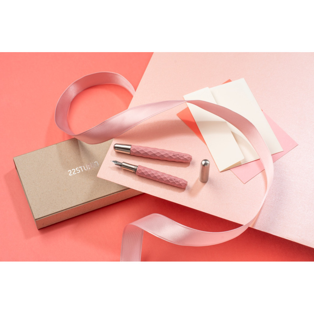 臺灣 22 DESIGN STUDIO 菱格系列 筆擱禮盒 鋼珠筆(櫻粉)