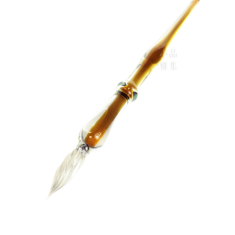 臺灣內灣 純手工 玻璃沾水筆(雙色-外透內透咖啡)