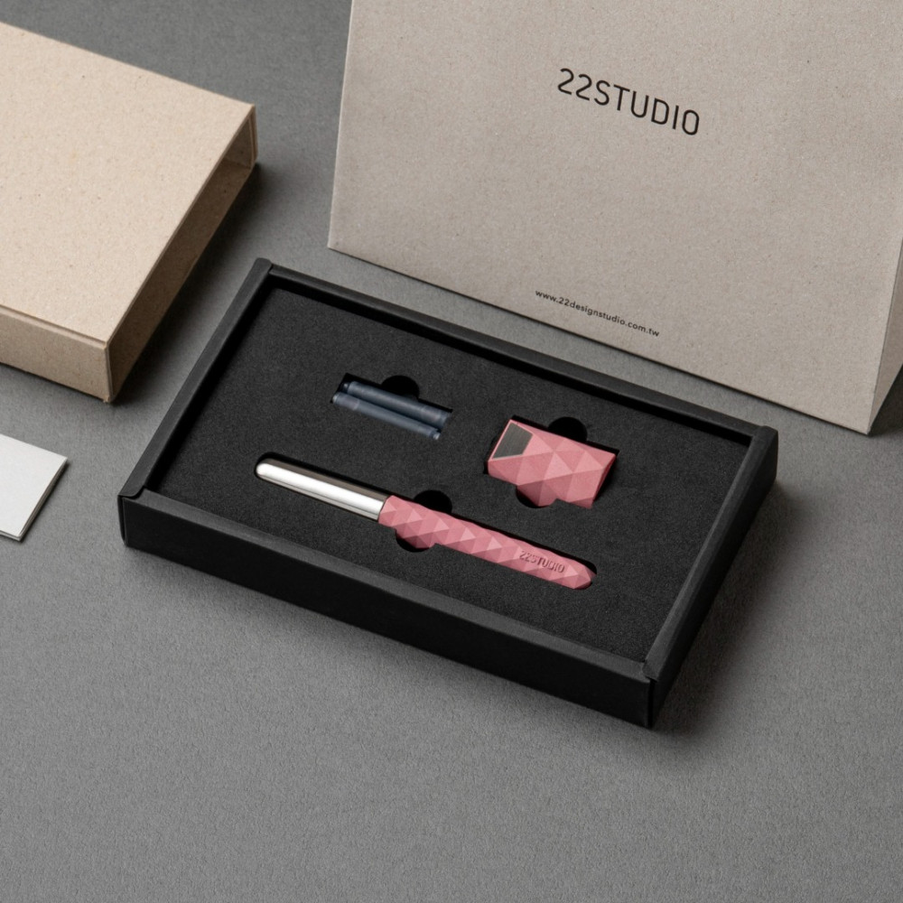 臺灣 22 DESIGN STUDIO 菱格系列 筆擱禮盒 鋼筆(櫻粉)