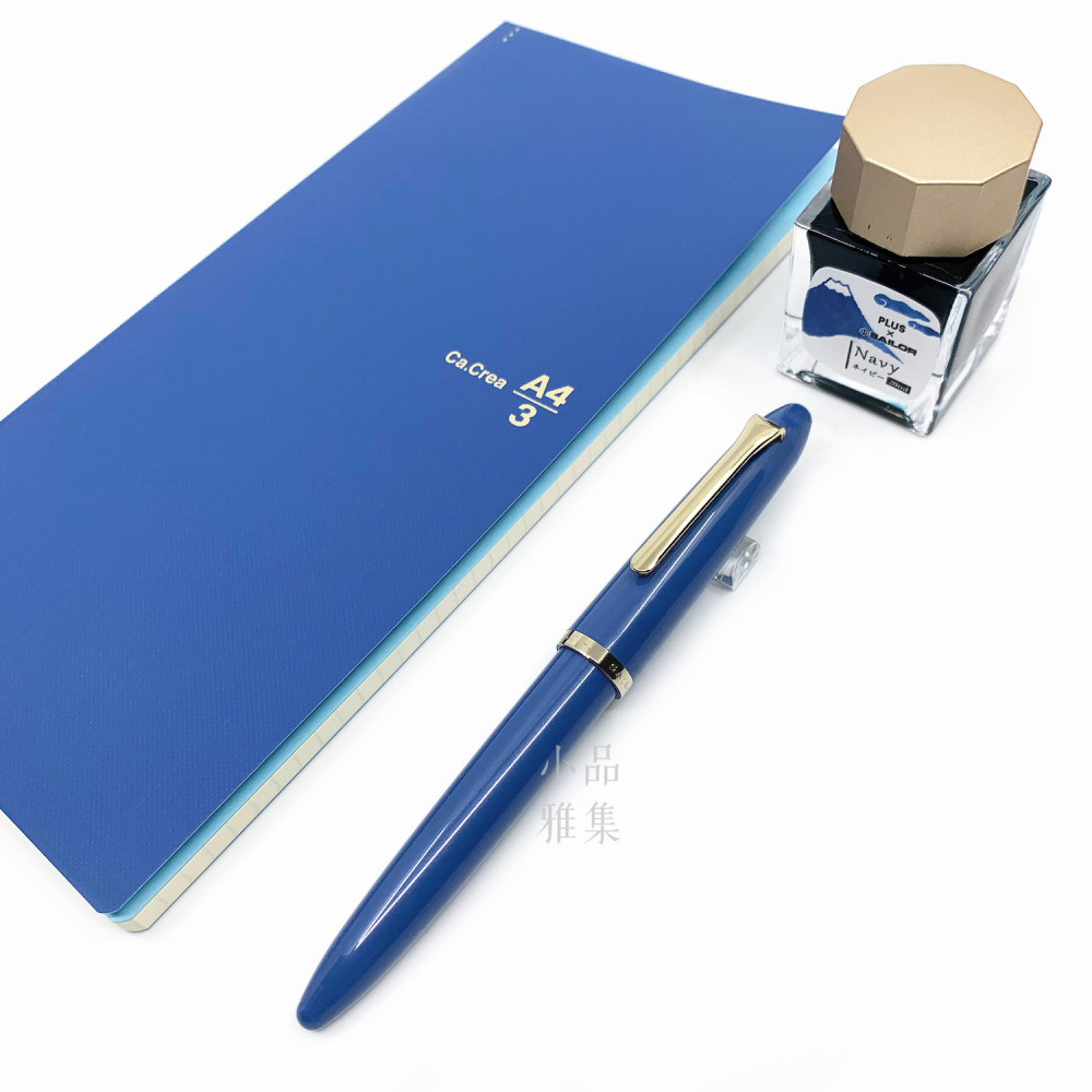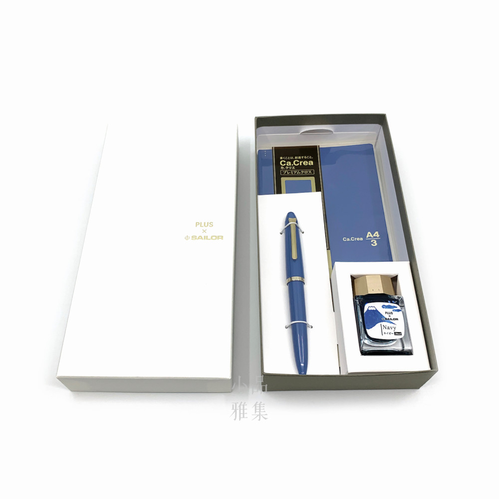 日本 SAILOR 寫樂 × PLUS Ca.Crea Premium Cloth筆記本 限定聯名款 鋼筆禮盒組(海軍藍)