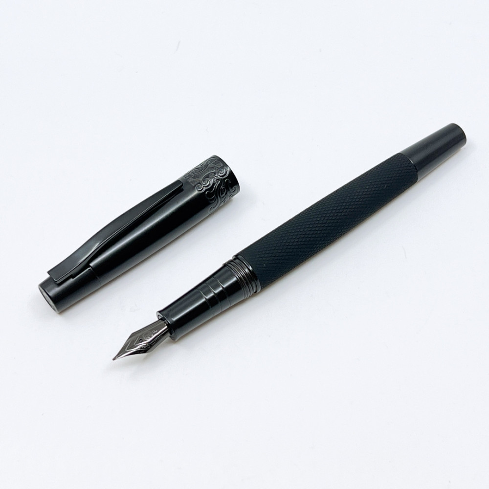 中國 弘典 HONG DIAN 文武黑將 全霧黑 筆蓋雕花裝飾 鋼筆