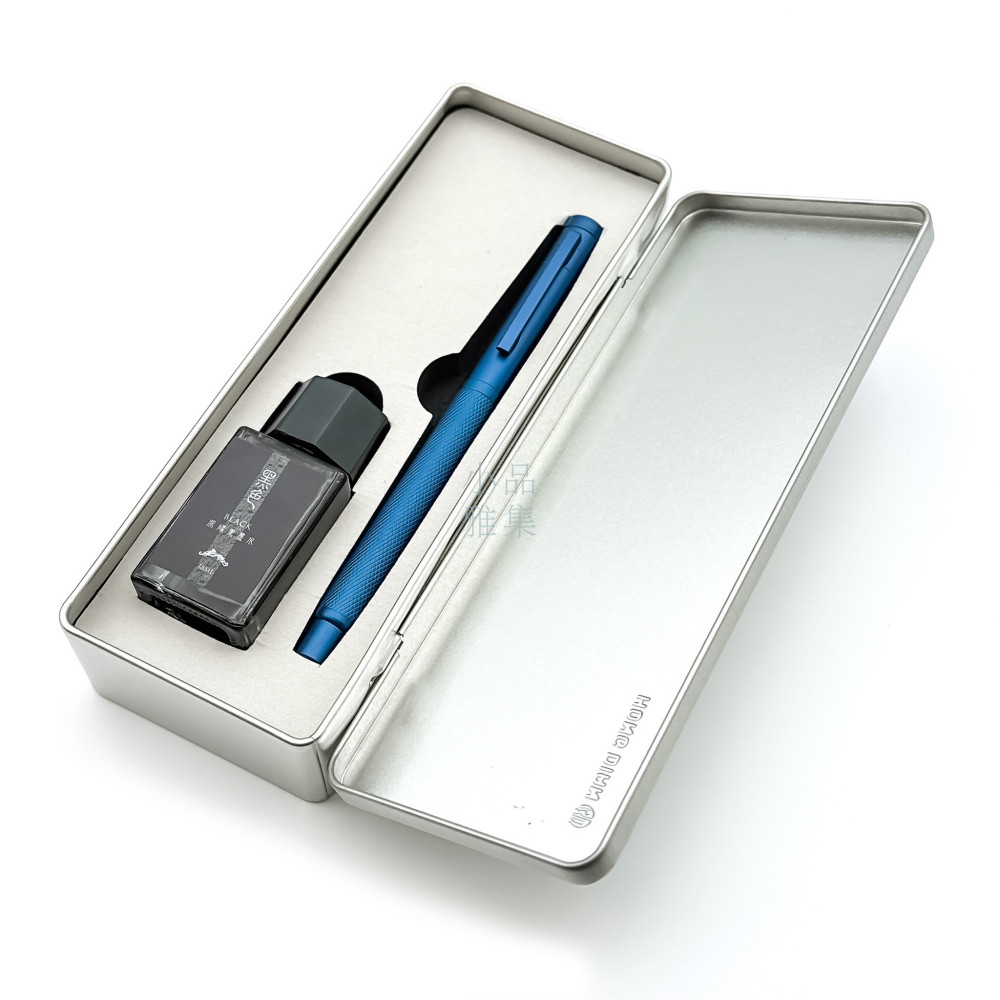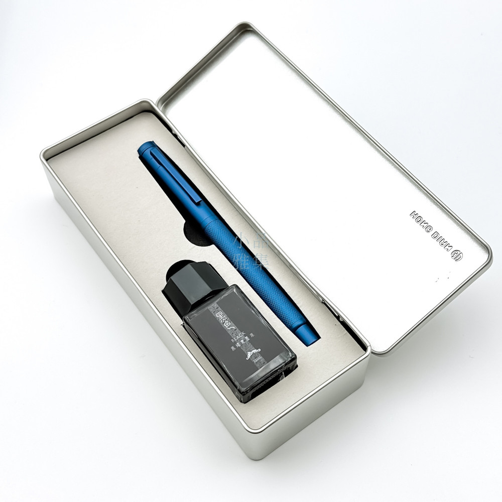 中國 弘典 HONG DIAN 希望藍 網紋桿 鋼筆 +墨水禮盒組