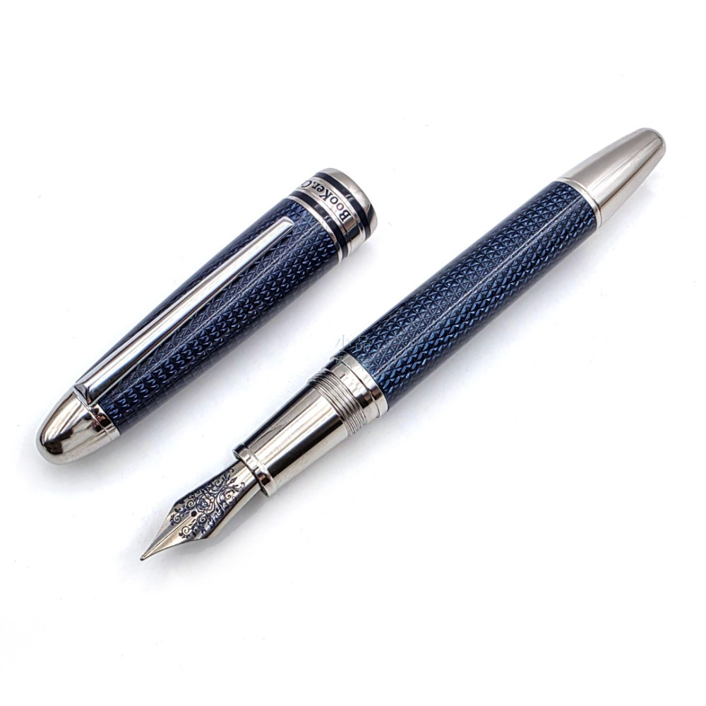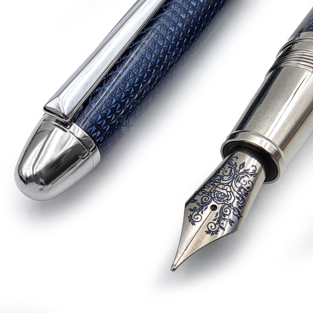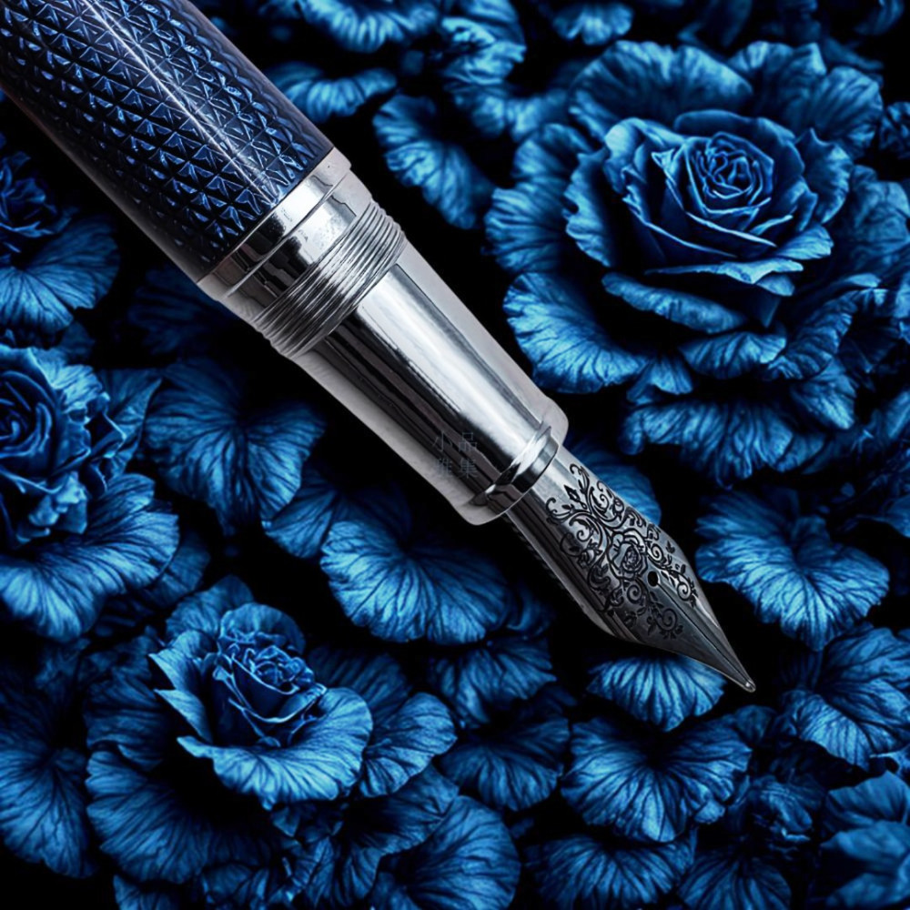 Booker.cr 布克希爾 巴黎釘紋 鐫刻玫瑰 鋼筆(藍款)