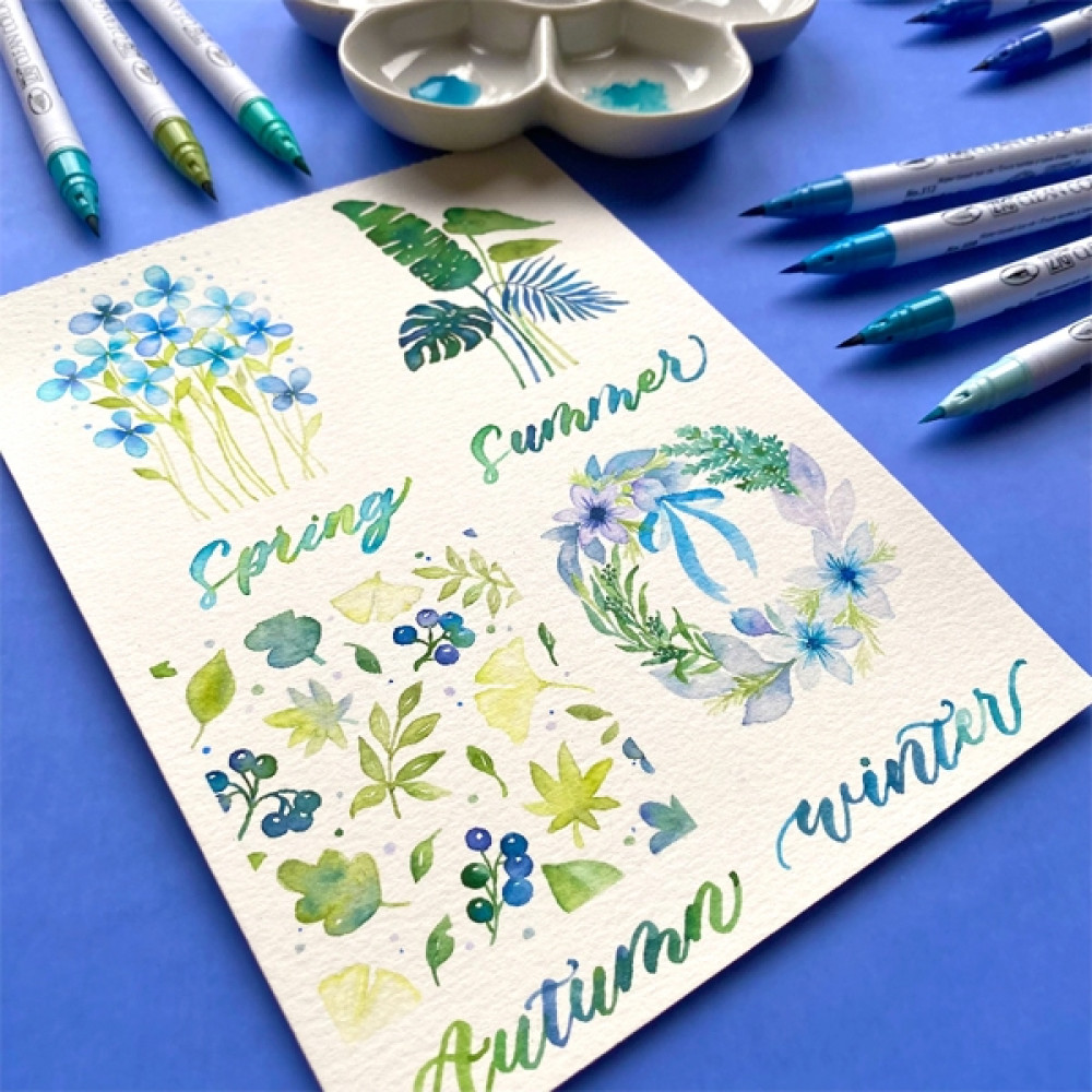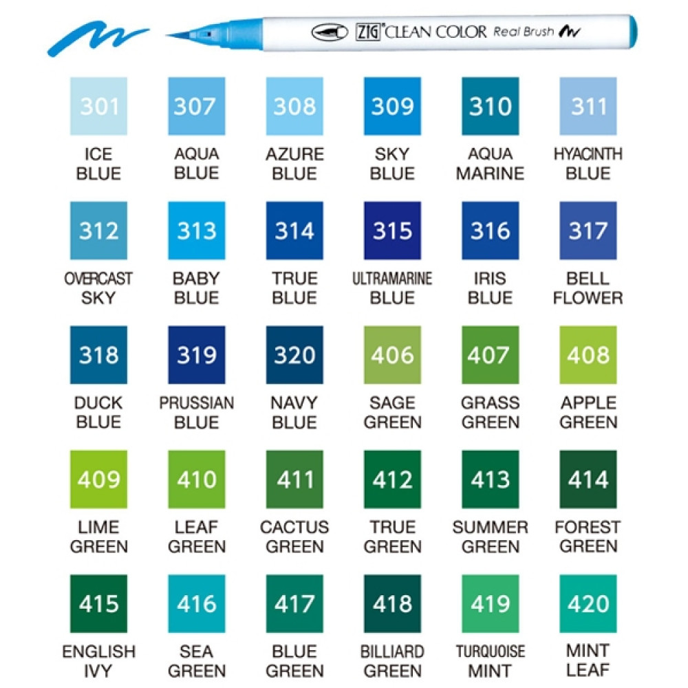 Kuretake 日本吳竹 ZIG 彩繪毛筆 三十色套組B(藍綠色系)